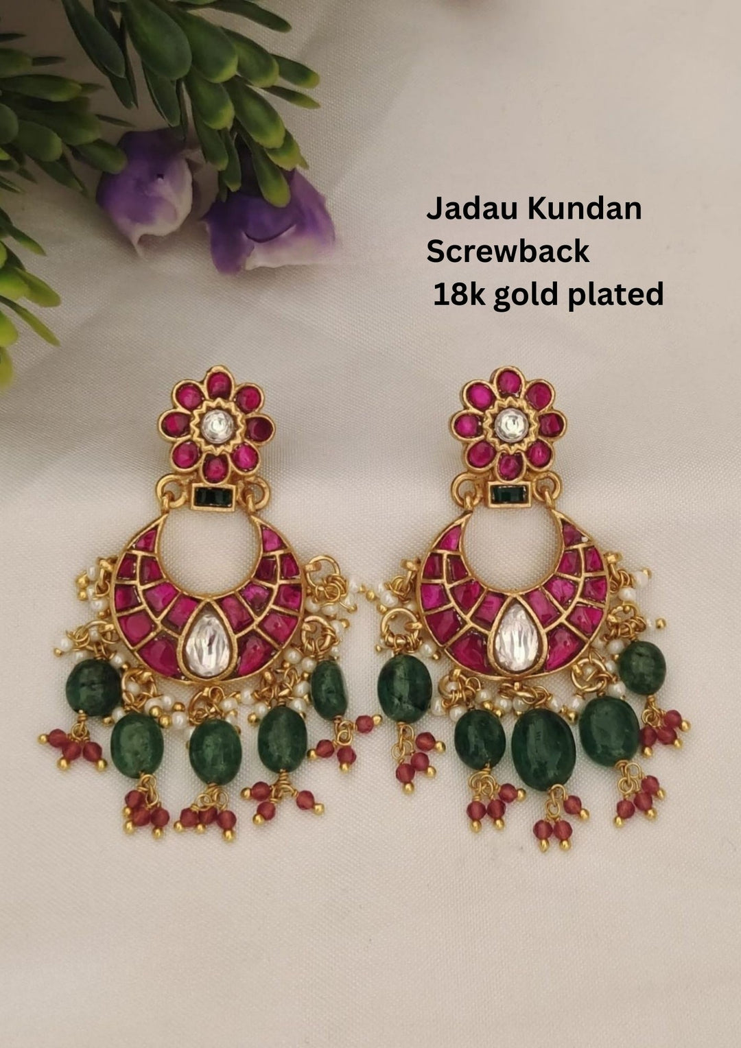 Jadau Kundan Brass Base Gold Plated Screwback Earings yle 400