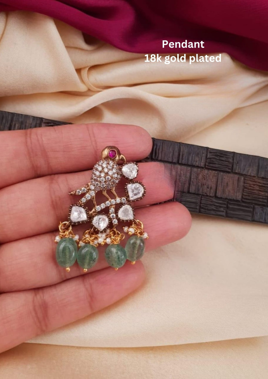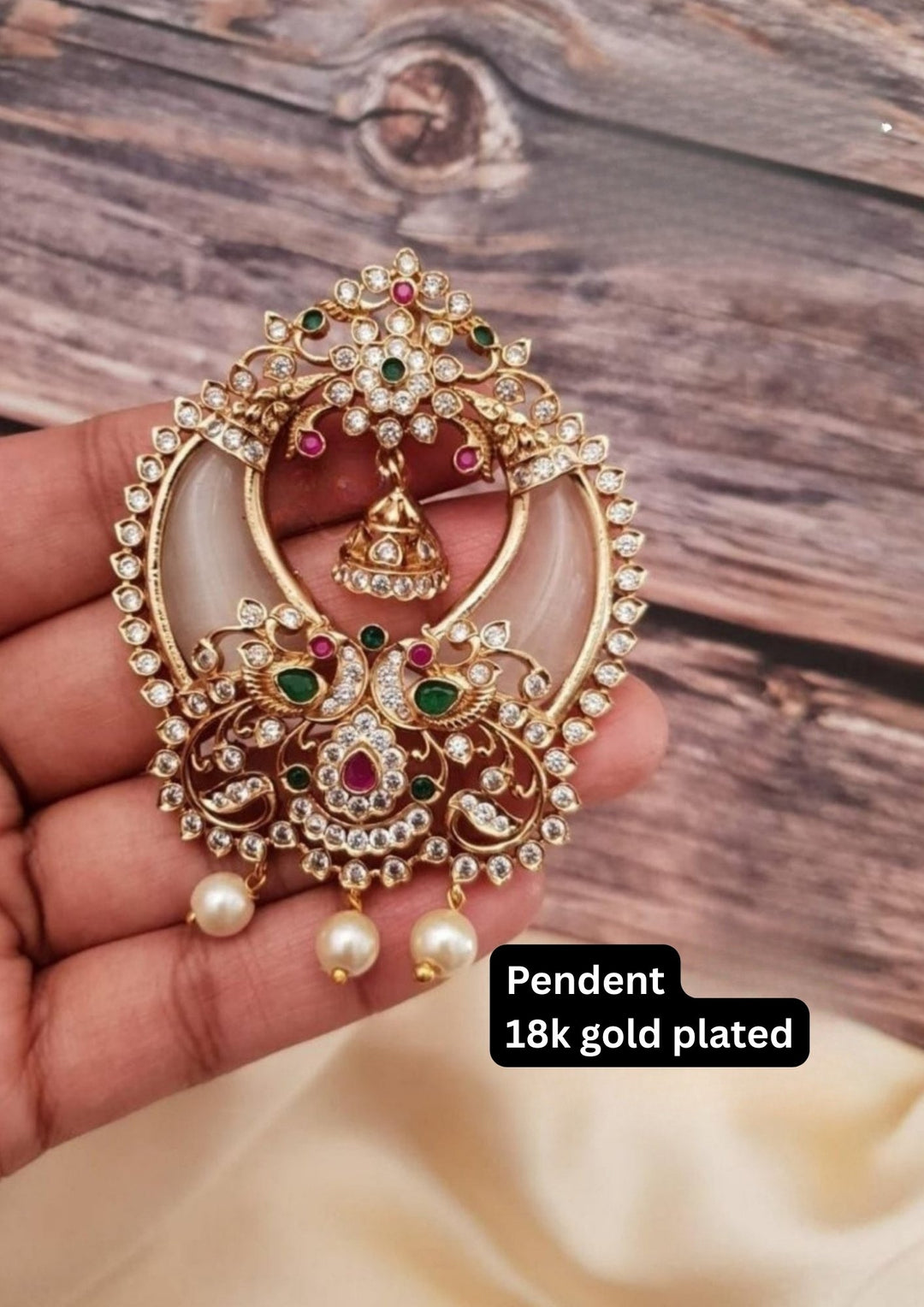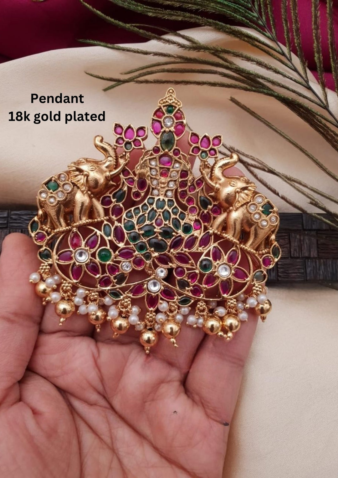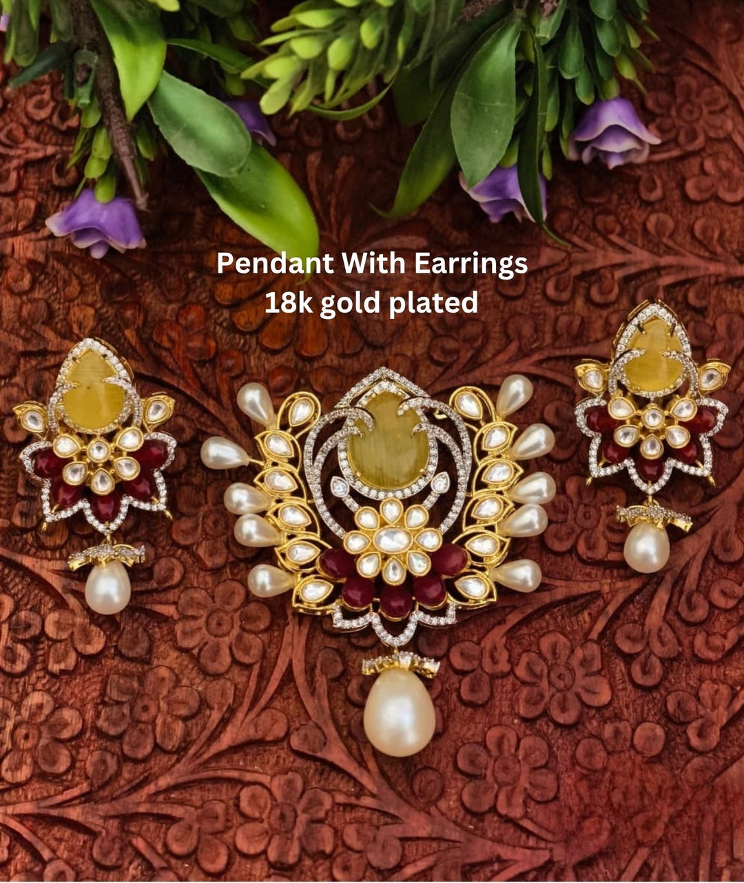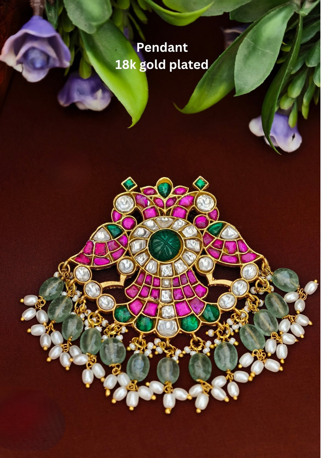 Kundan Open Hook Kemp Pendent Necklace with Earrings g10950
