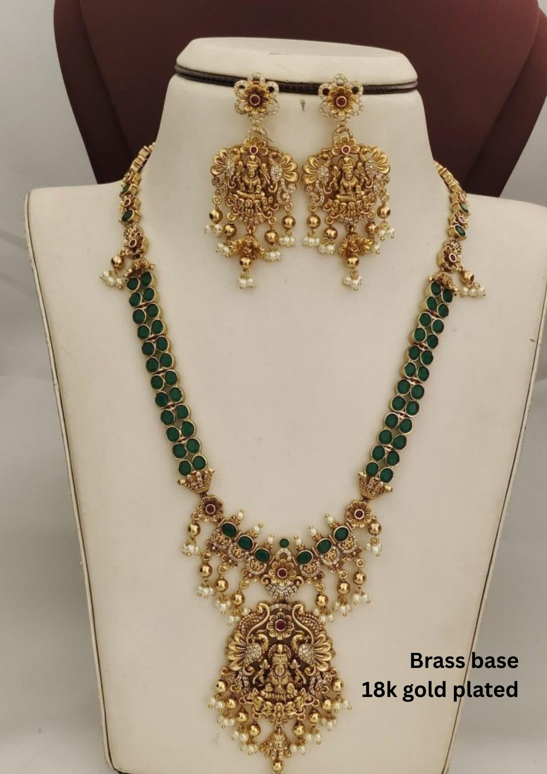 Kundan Temple Brass Base Necklace with Earrings g 10999