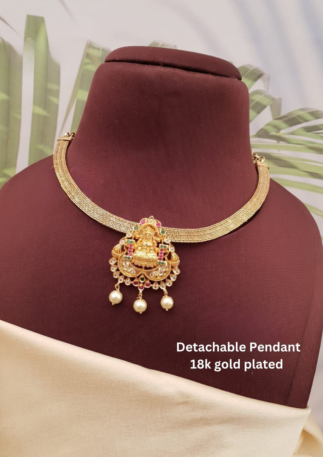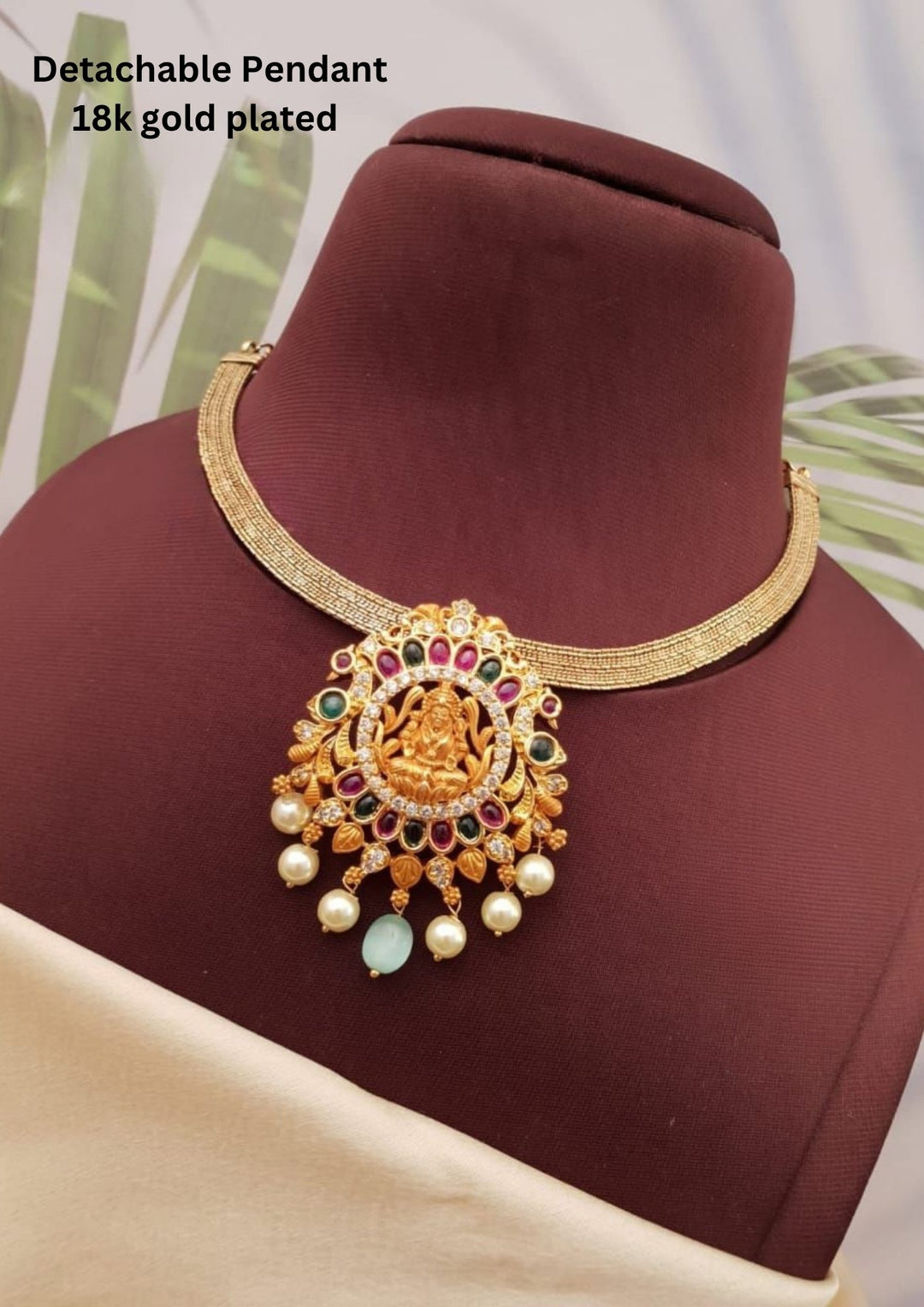 Kundan Temple Detachable Pendent Necklace with Earrings g10750