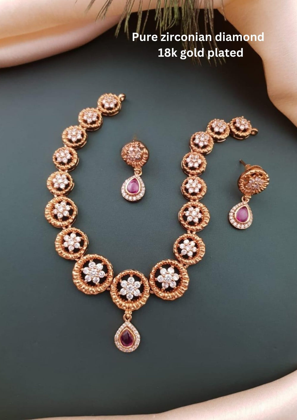 Pure Zirconian Diamond Gold Plated Necklace With Earrings c1010020
