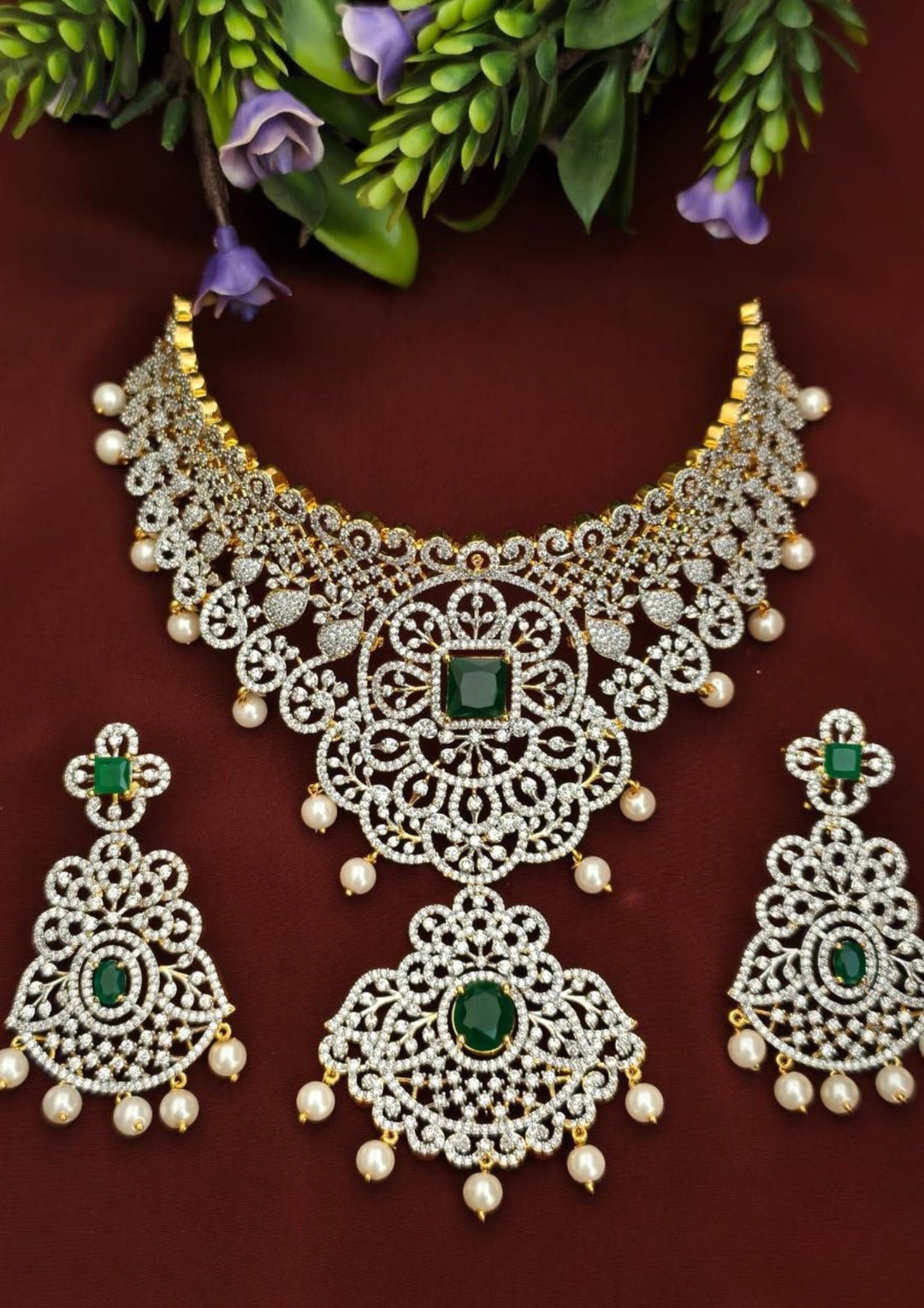 Pure Zirconian Diamond Necklace With Earrings g 101650