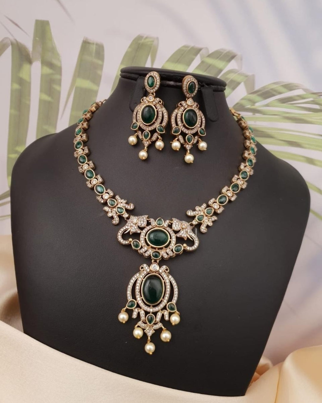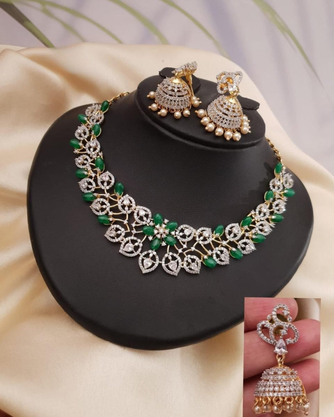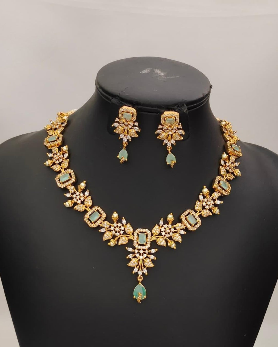 Pure Zirconian Diamond Temple Necklace With Earrings s480044