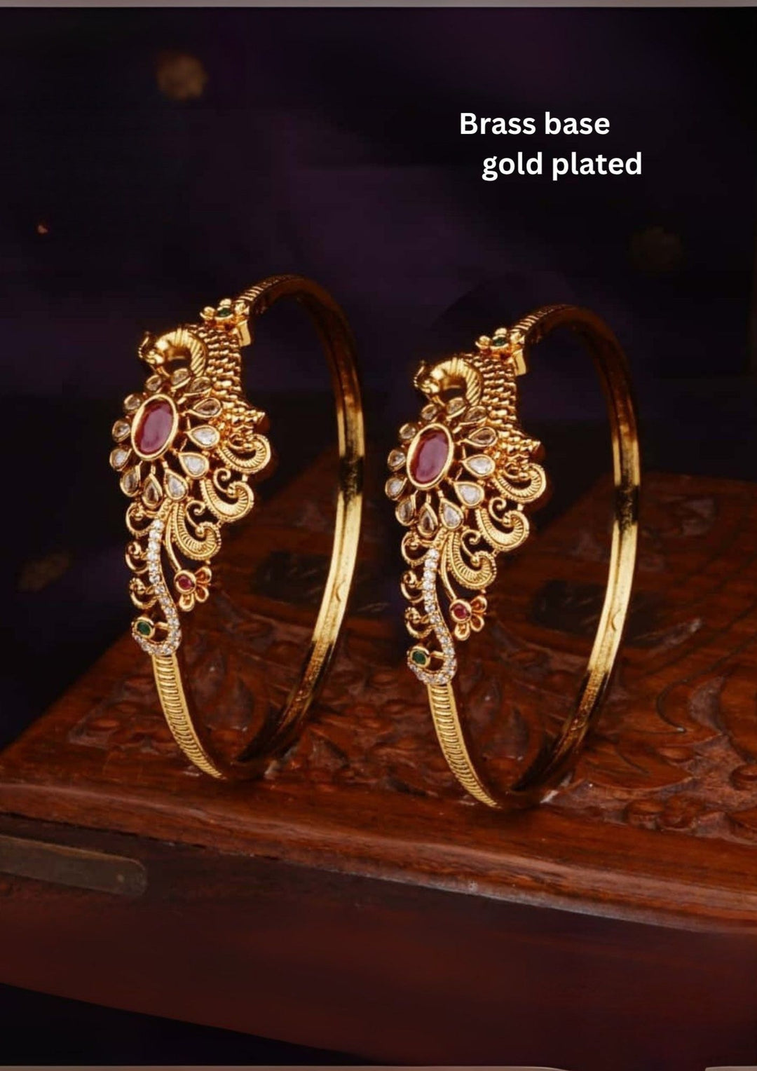 Kundan Gold Plated Peacock Bangles (Set of 2) a24