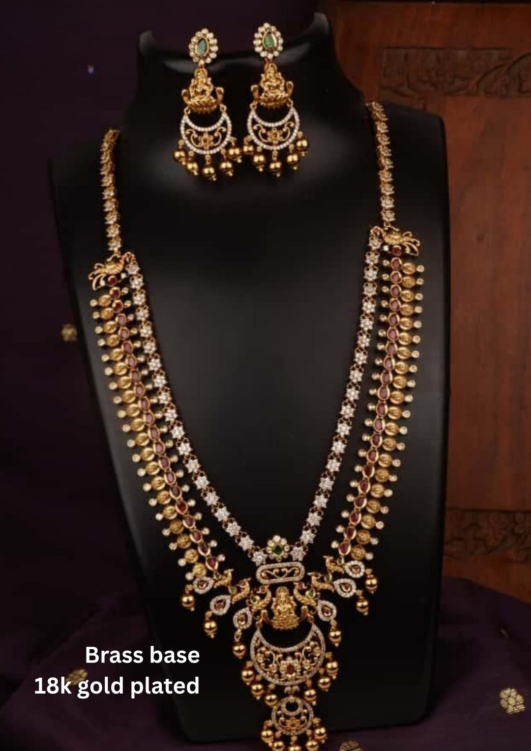 Kundan Temple Necklace With Rice Pearls And Earrings g 101399