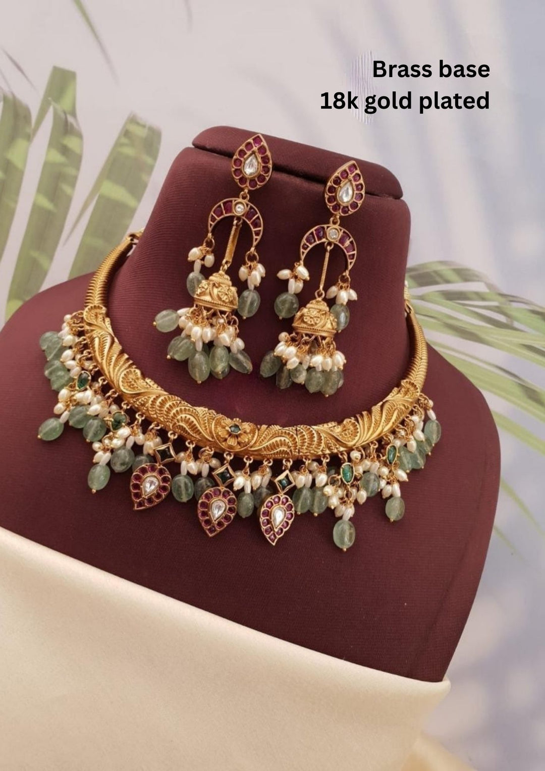 Kundan Brass Base Necklace With Earrings g 10850