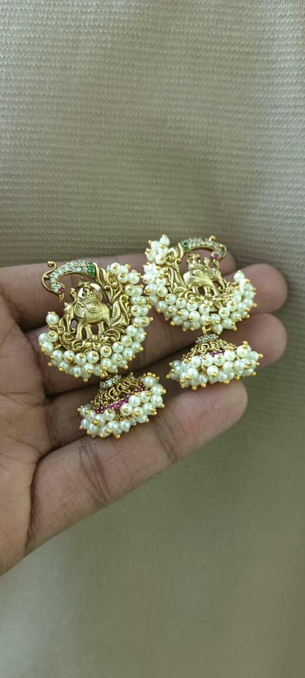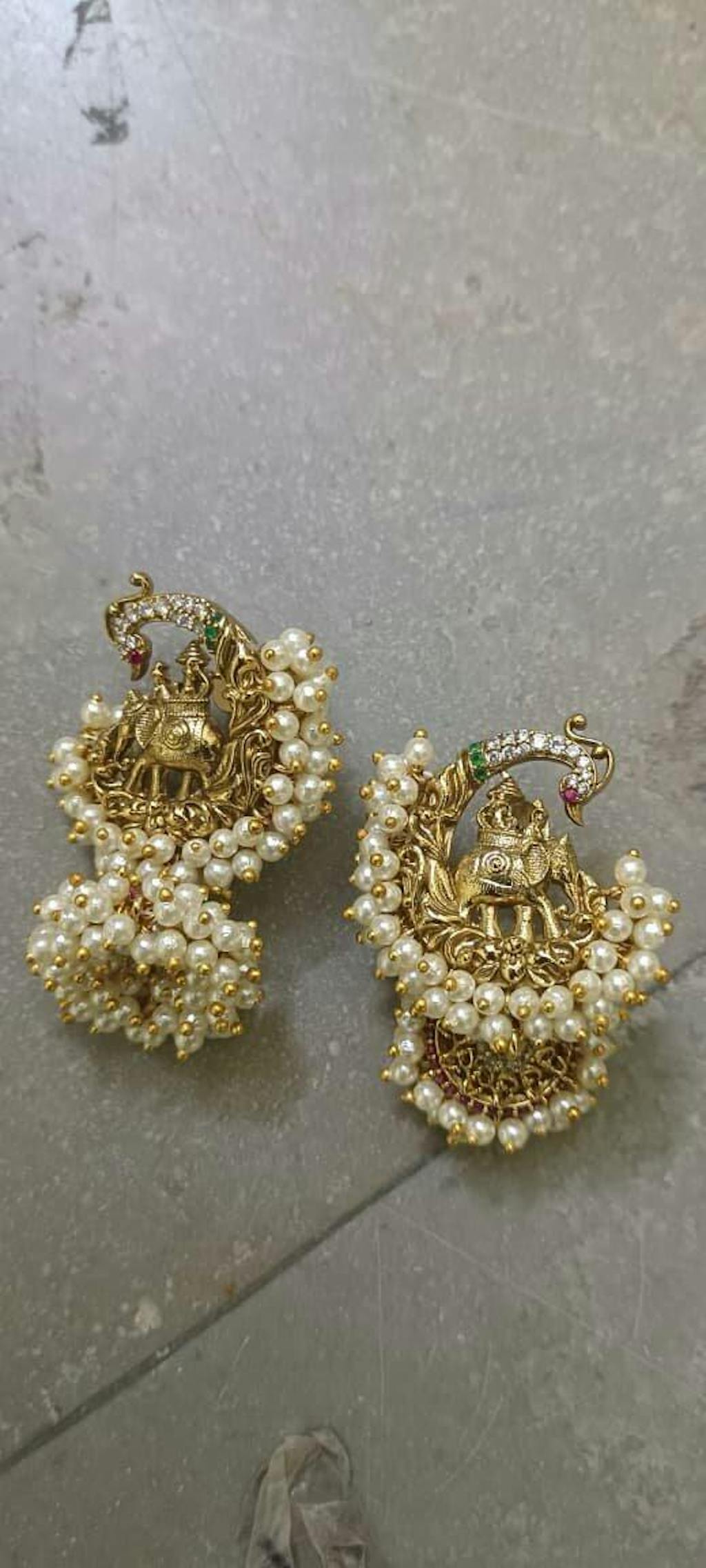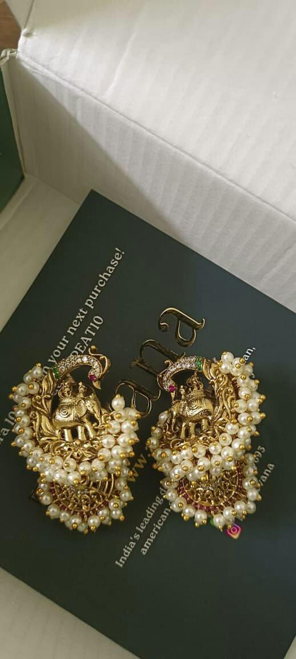Kundan Antique Beaded Gold Plated Temple Earrings g10999