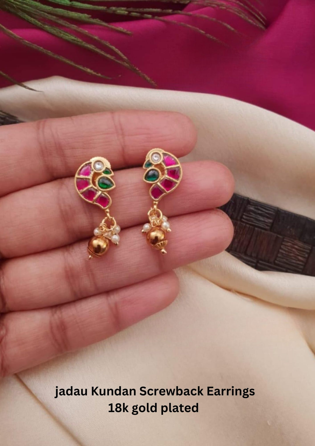 Jadau Kundan Brass Base Earrings g 101280 (Screwback)