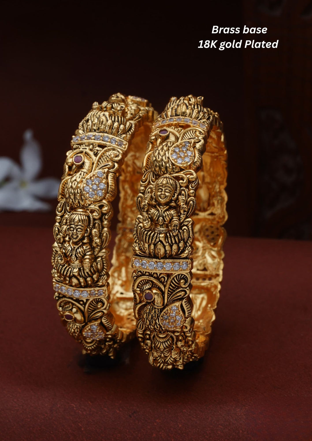 Kundan stone matt finish temple jewelry bangles c106520 (set of 2)