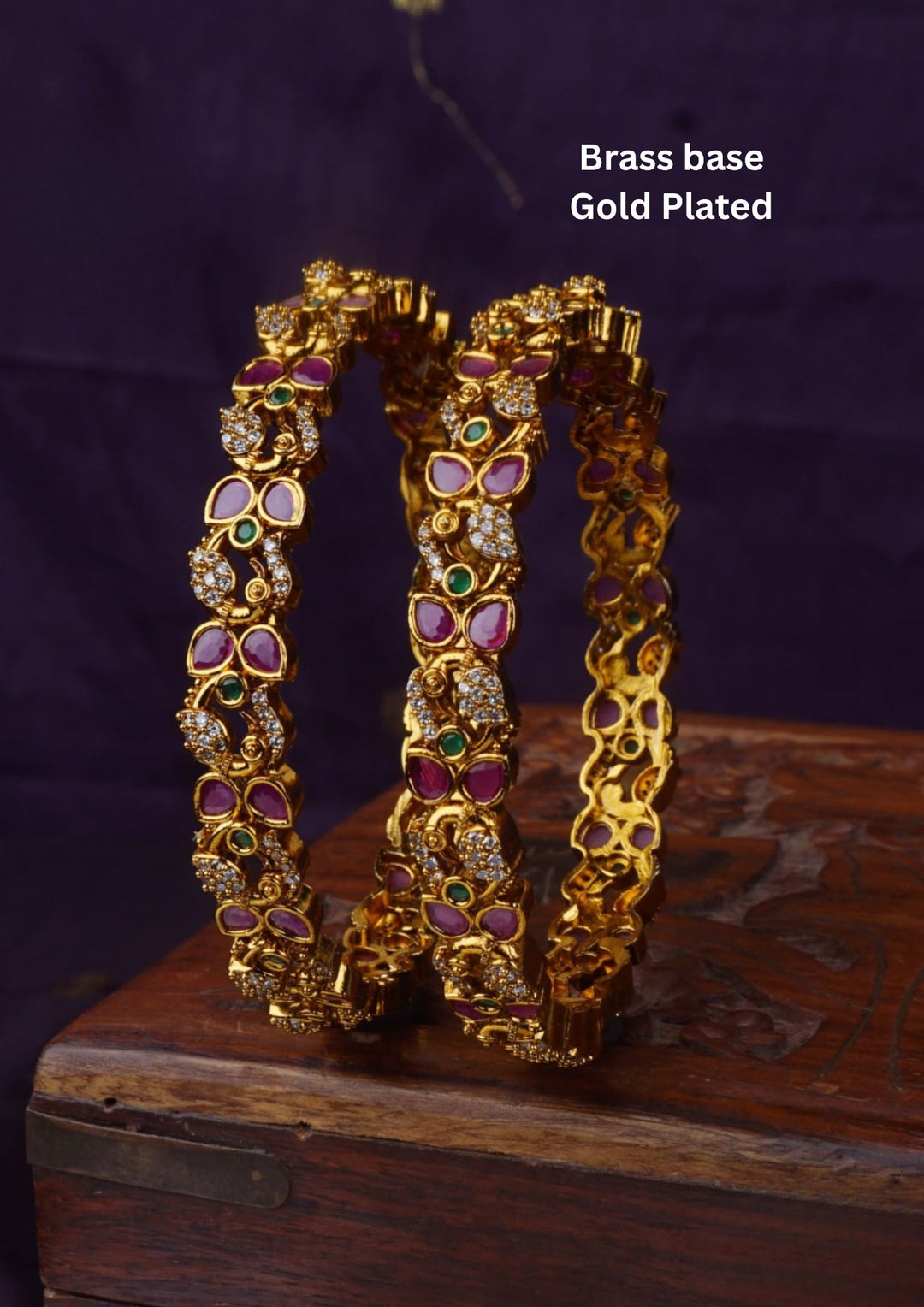 Kundan Gold Plated Kempu Peacock Bangles c107020