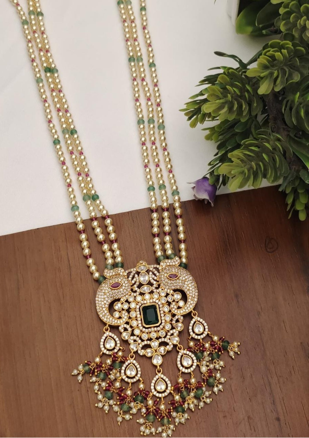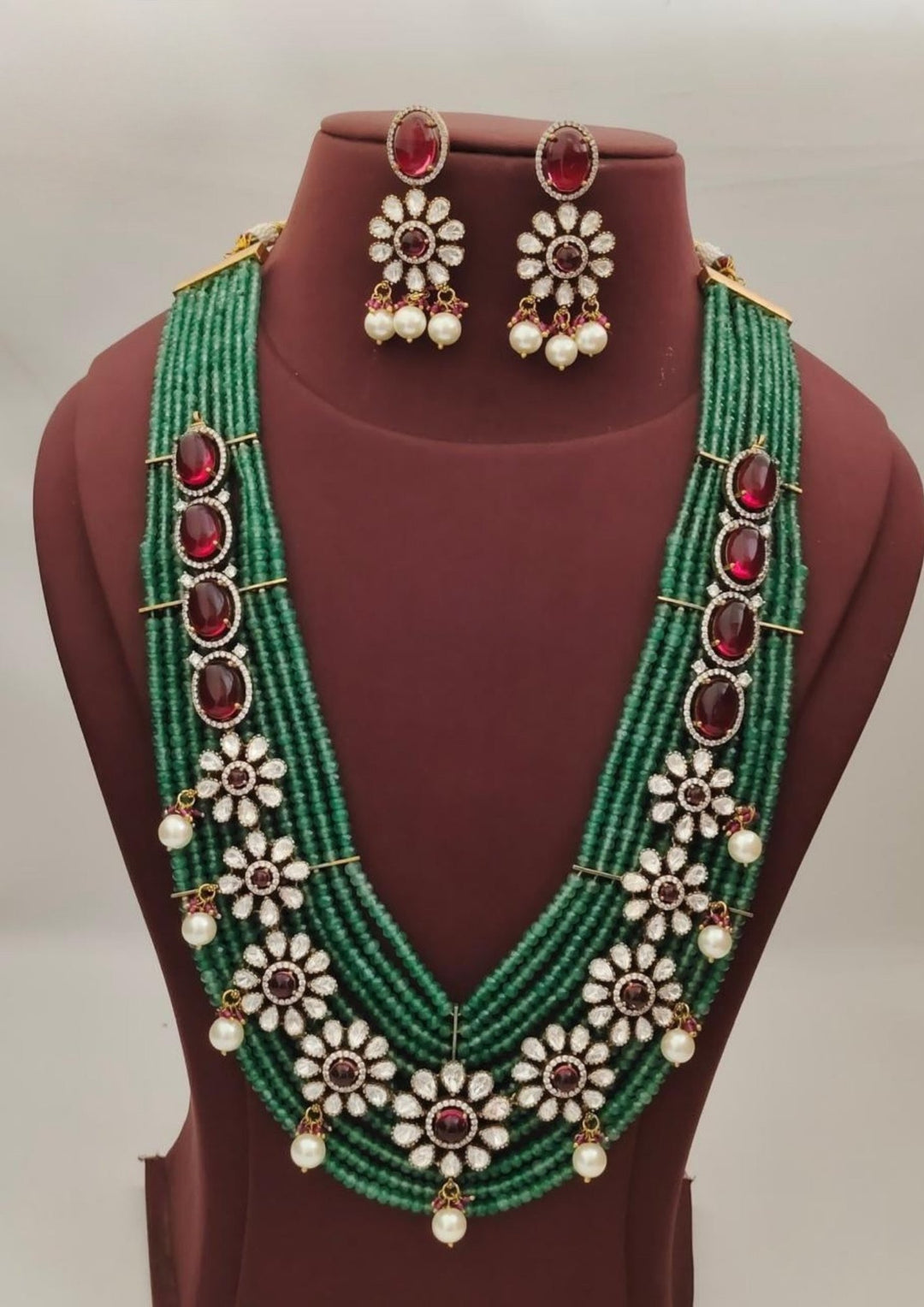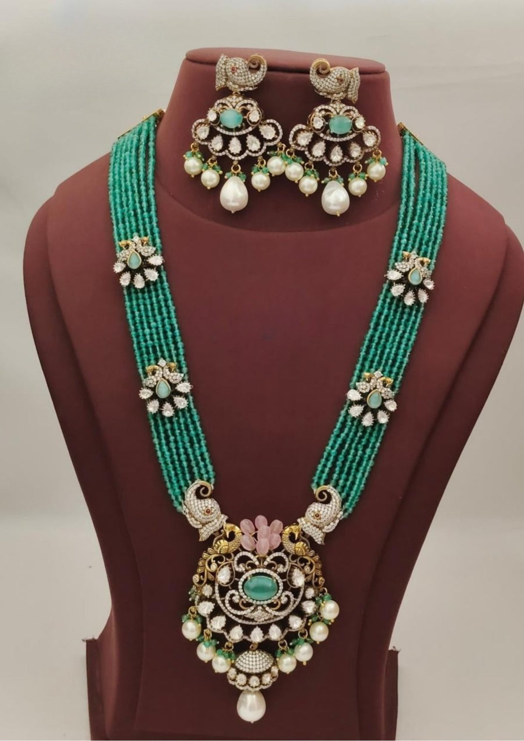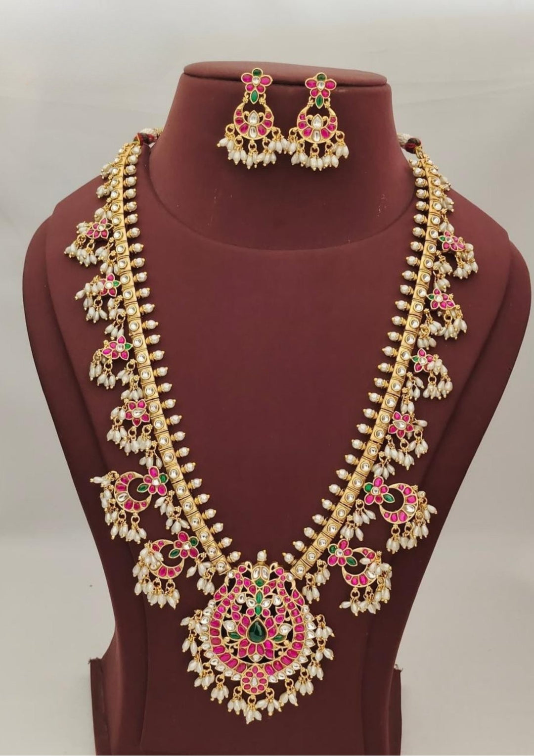 Jadau Kundan & Beads Necklace with Earrings s 950009
