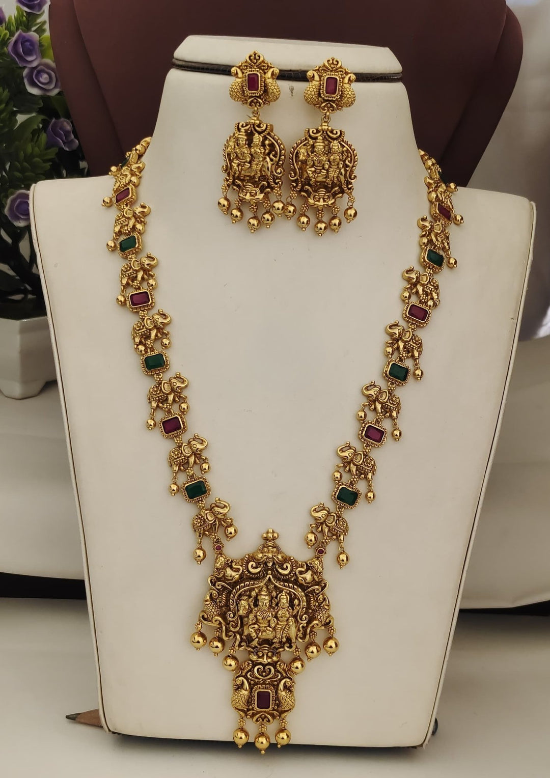 Kundan & Heavy Nakshi Temple Necklace with Earrings g103850
