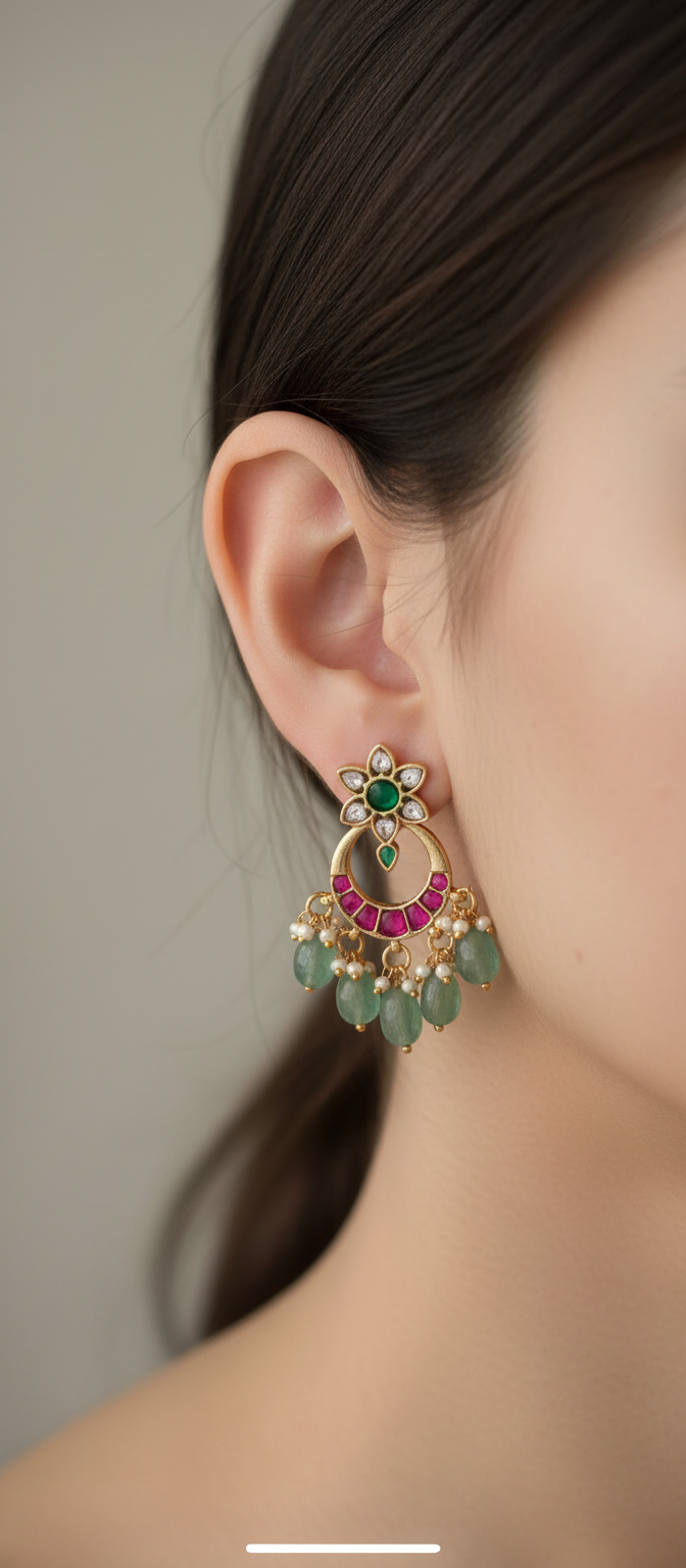 Kundan Kemp Gold Plated Jhumkas a24