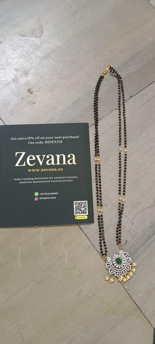 Pure Zirconian Diamond Floral Emerald Mangalsutra s85006