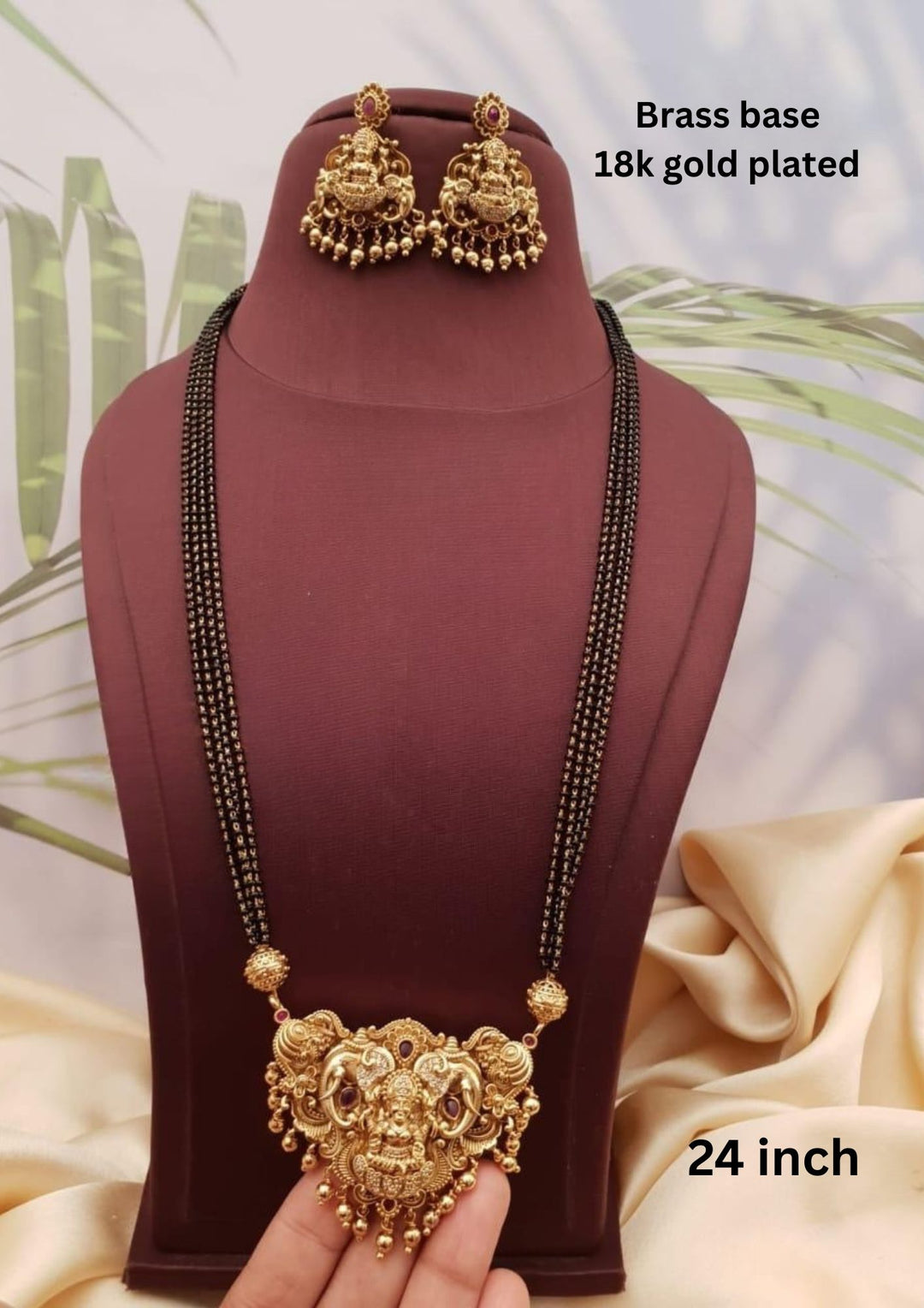 Nakshi Kundan Temple 24 inch Mangalsutra with Earrings g101099