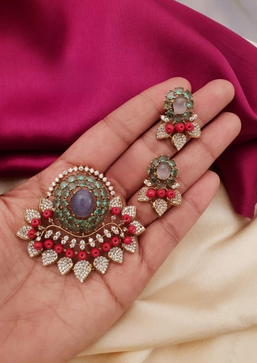 Real Kemp Detachable Pendent Necklace with Earrings g102250