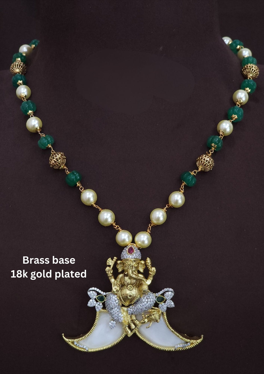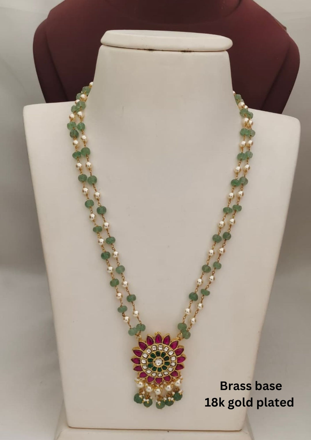 Jadau Kundan & Beads Necklace with Earrings s500054