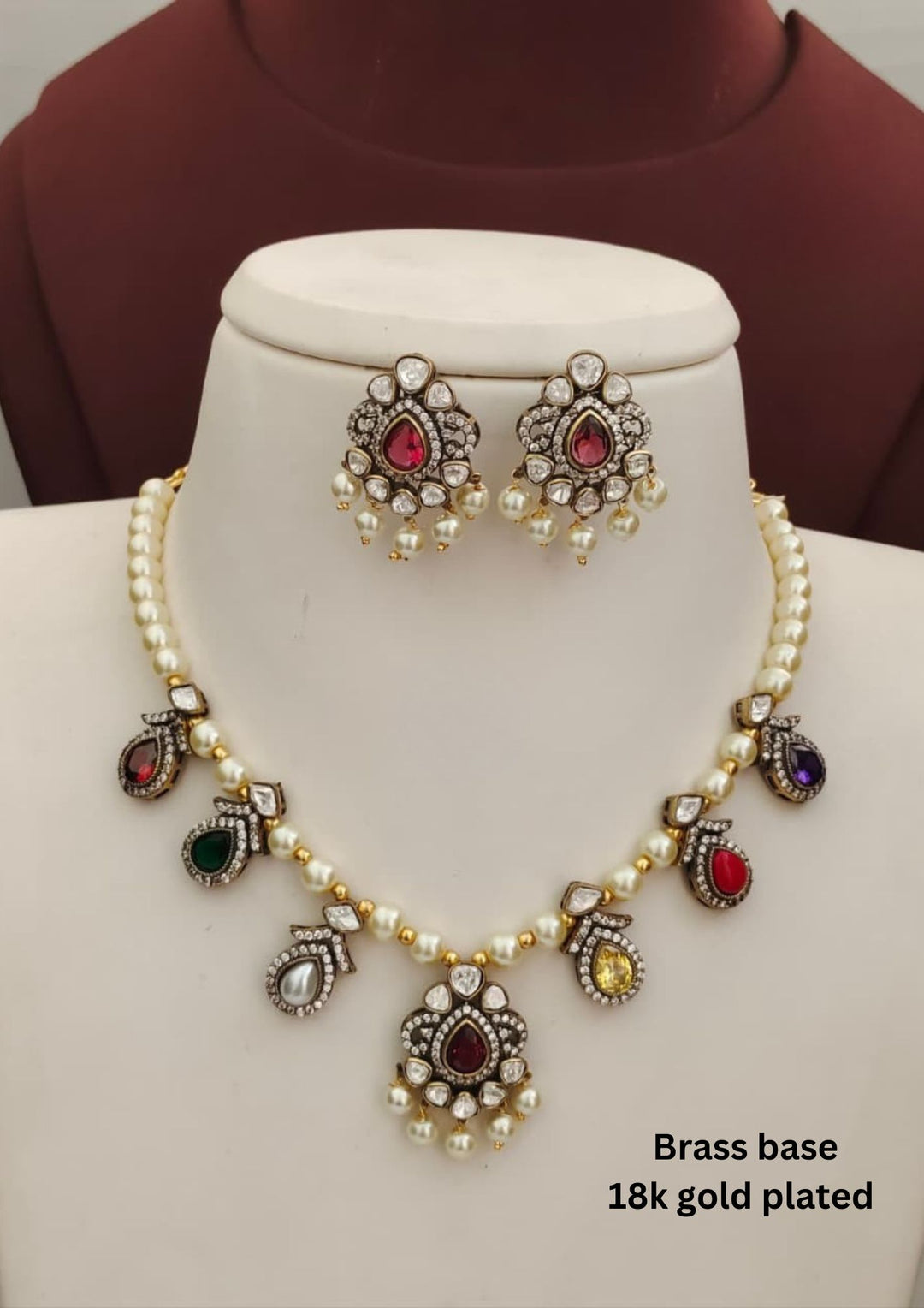 Jadau Kundan Necklace with Screwback Earrings g101090