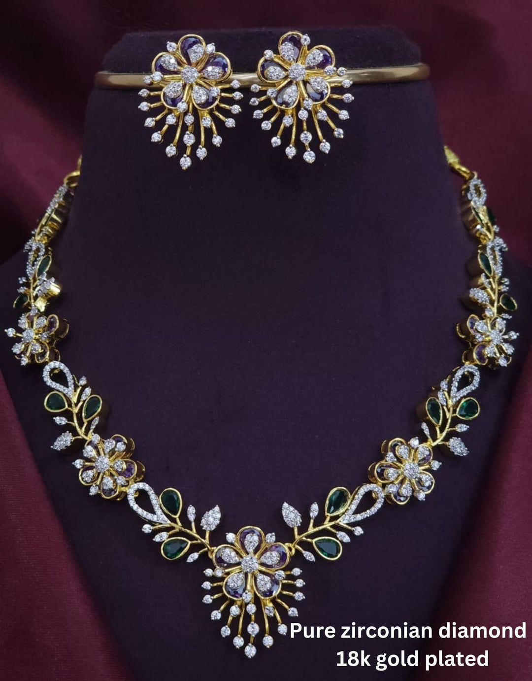 Pure Zirconian Diamond Necklace With Earrings r10950