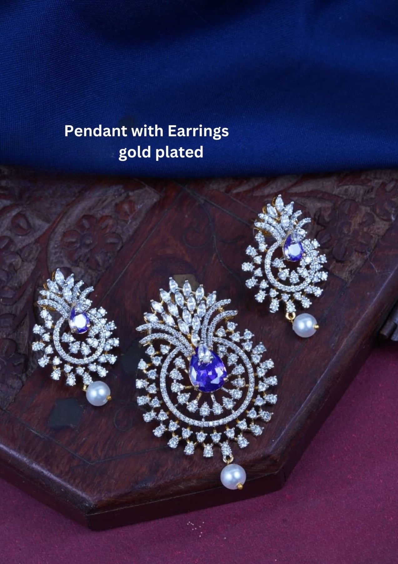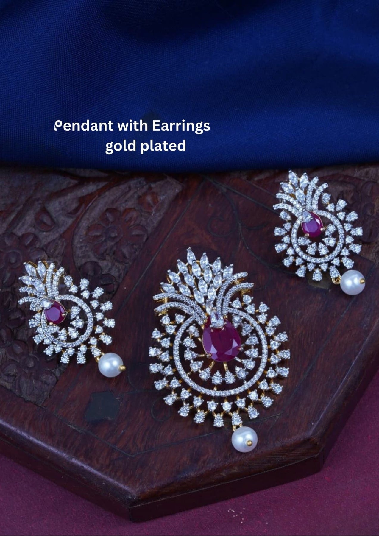 Pure Zirconian Diamond Gold Plated Pendant With Earrings c108020