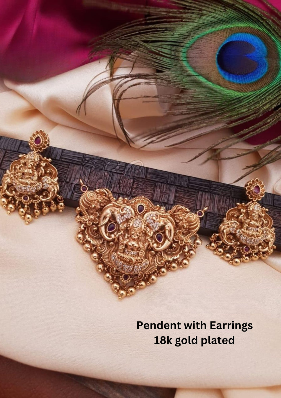 Nakashi Kunda Temple Pendant with Earrings g10980