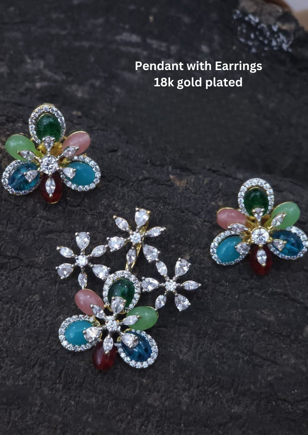 Pure Zirconian Diamond Pendant with Earrings r10720