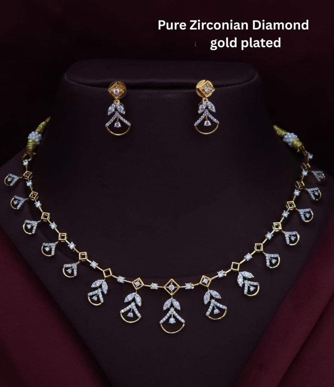 Pure Zirconian Diamond Gold Plated Dazzling Necklace With Earrings r101375