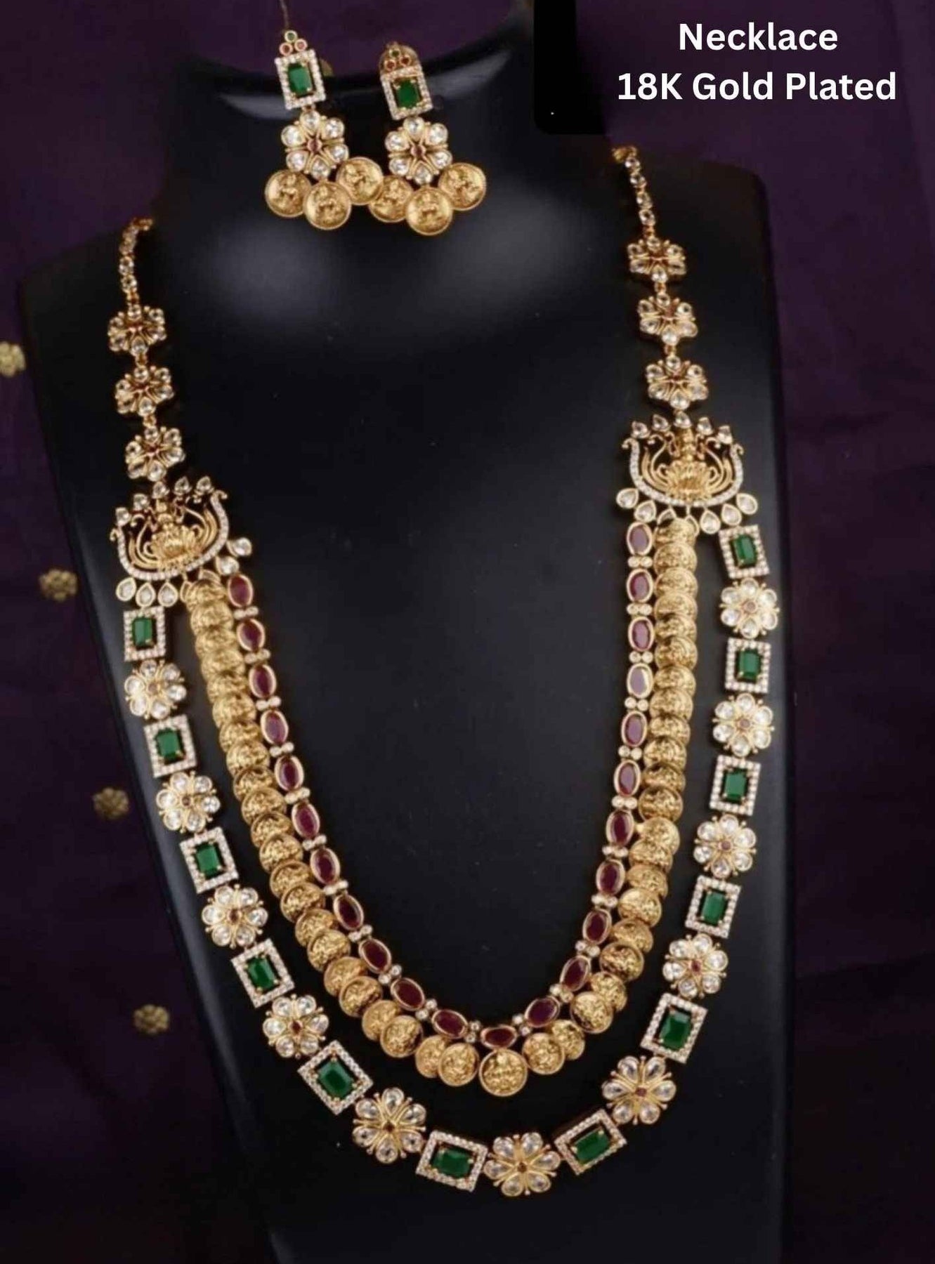 Kundan Gold Plated Temple 2 Layer Lakshmi Necklace With Earrings c1023020