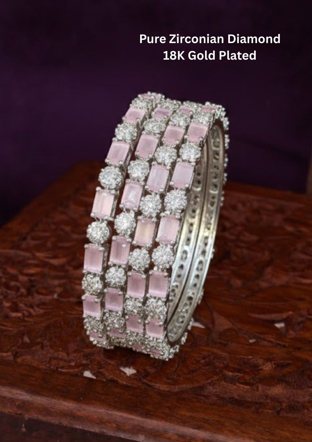 Pure Zirconian Diamond Gold Plated Bangles ( Set of 4 ) t25