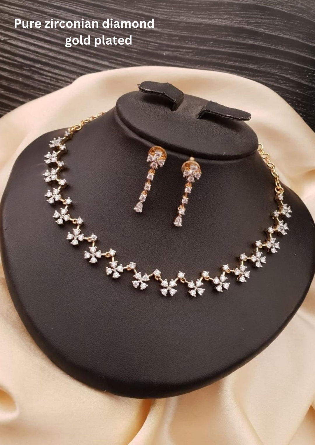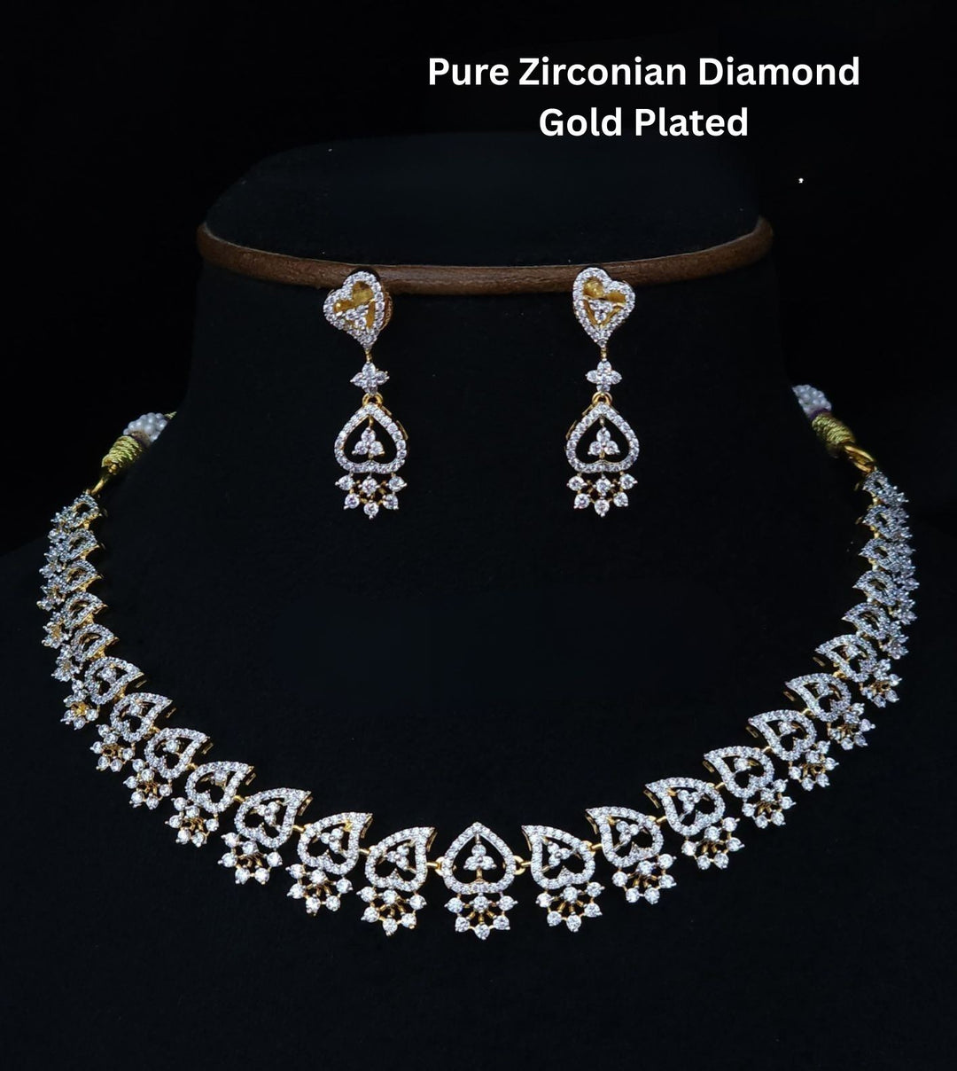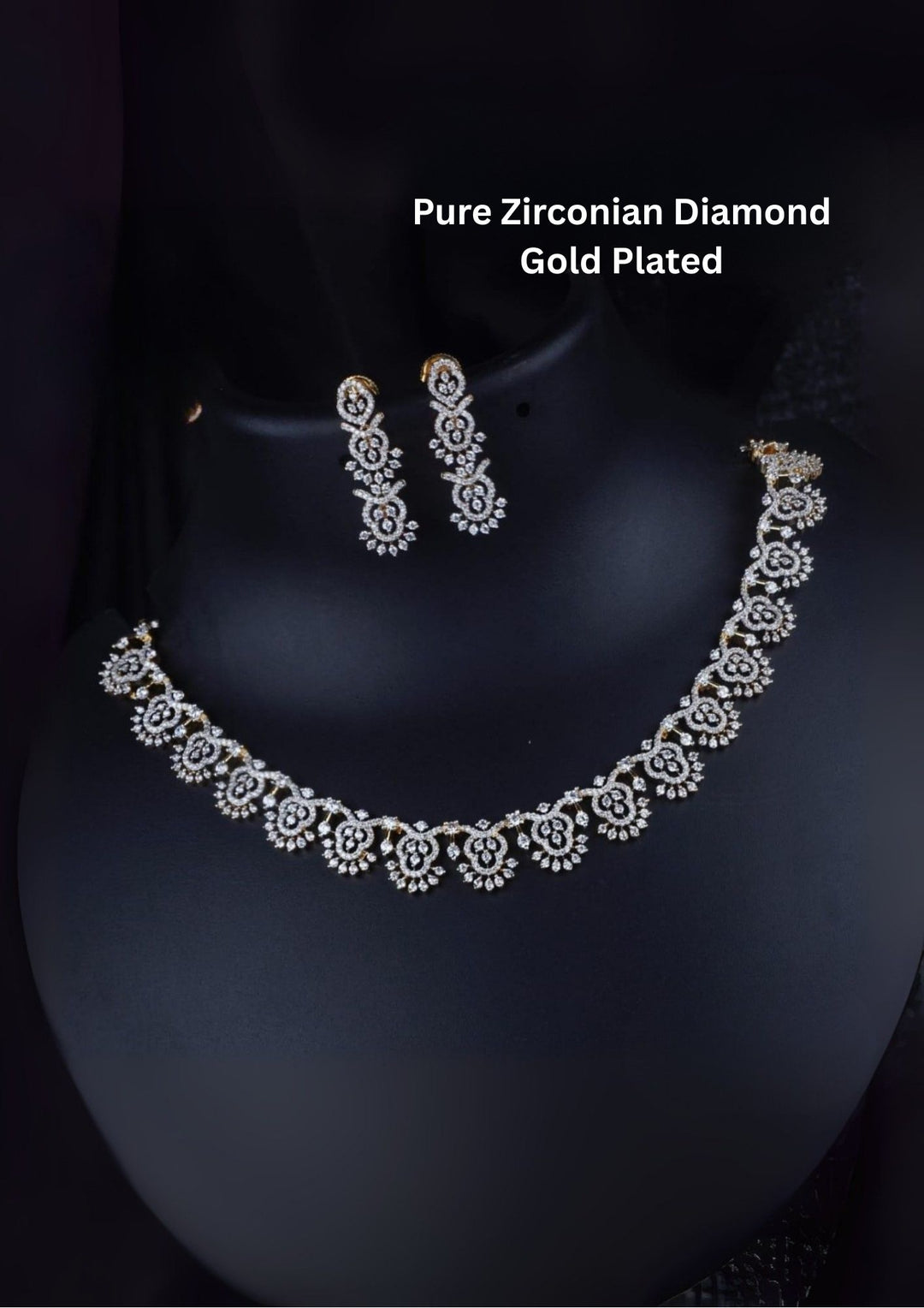 Pure Zirconian Diamond Gold Plated Necklace With Earrings r101350