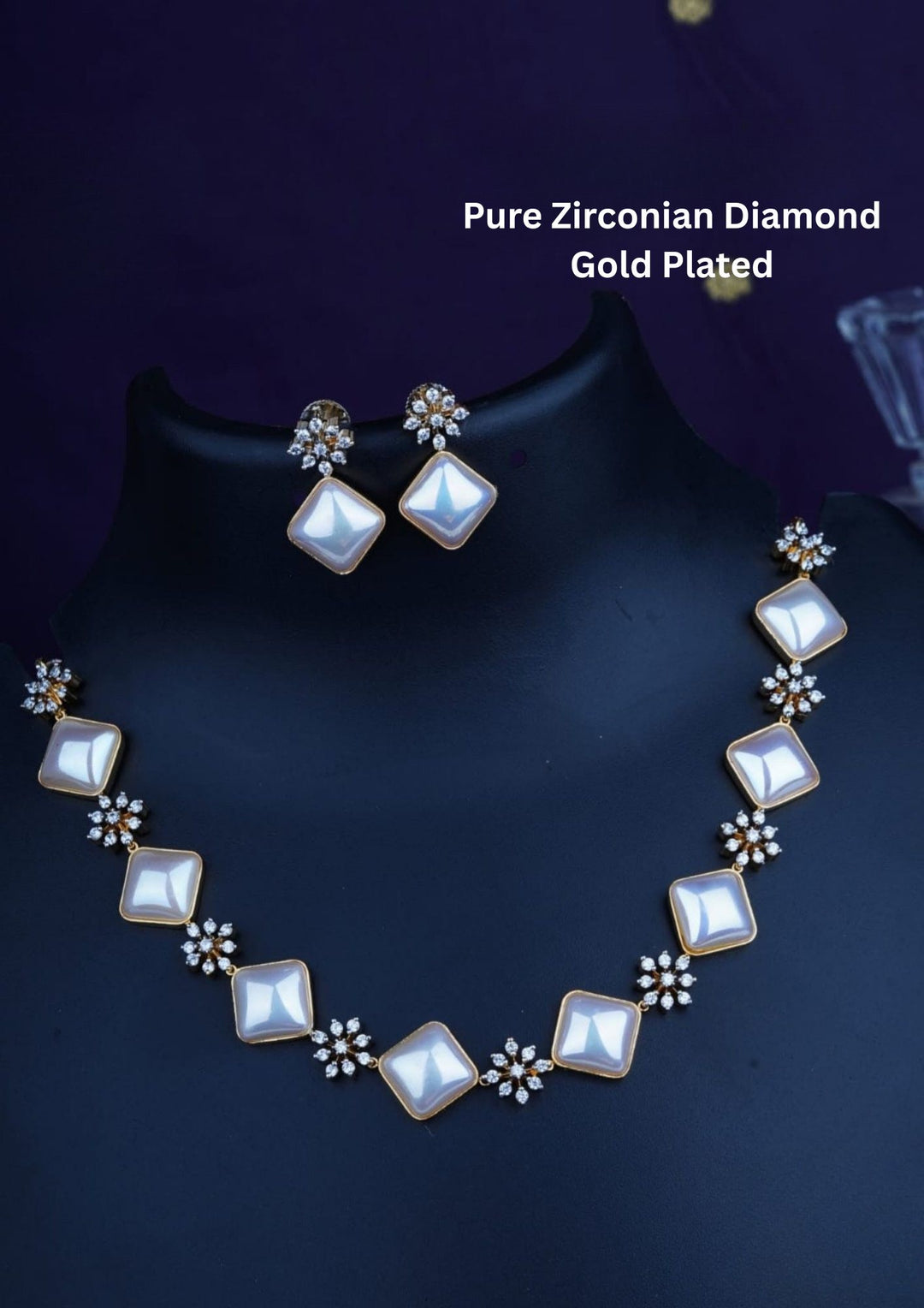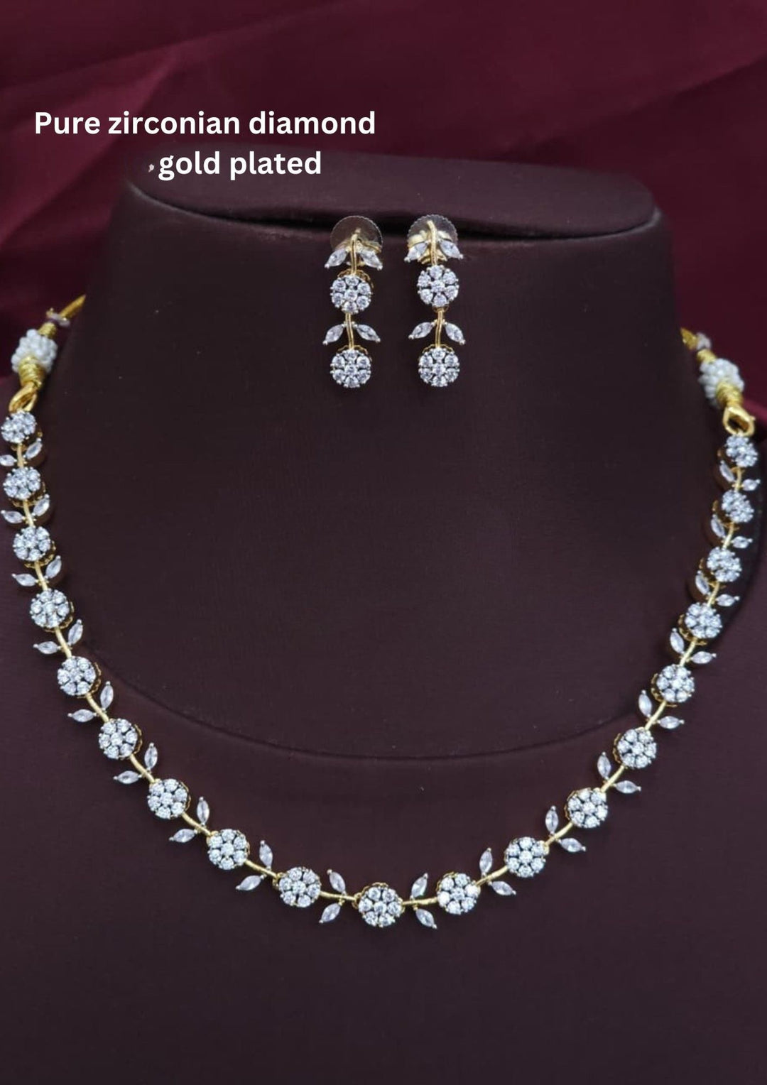 Pure Zirconian Diamond Gold Plated Necklace With Earrings r10950