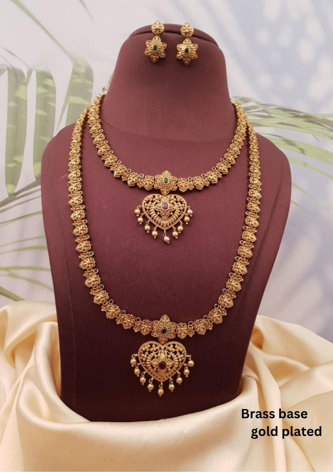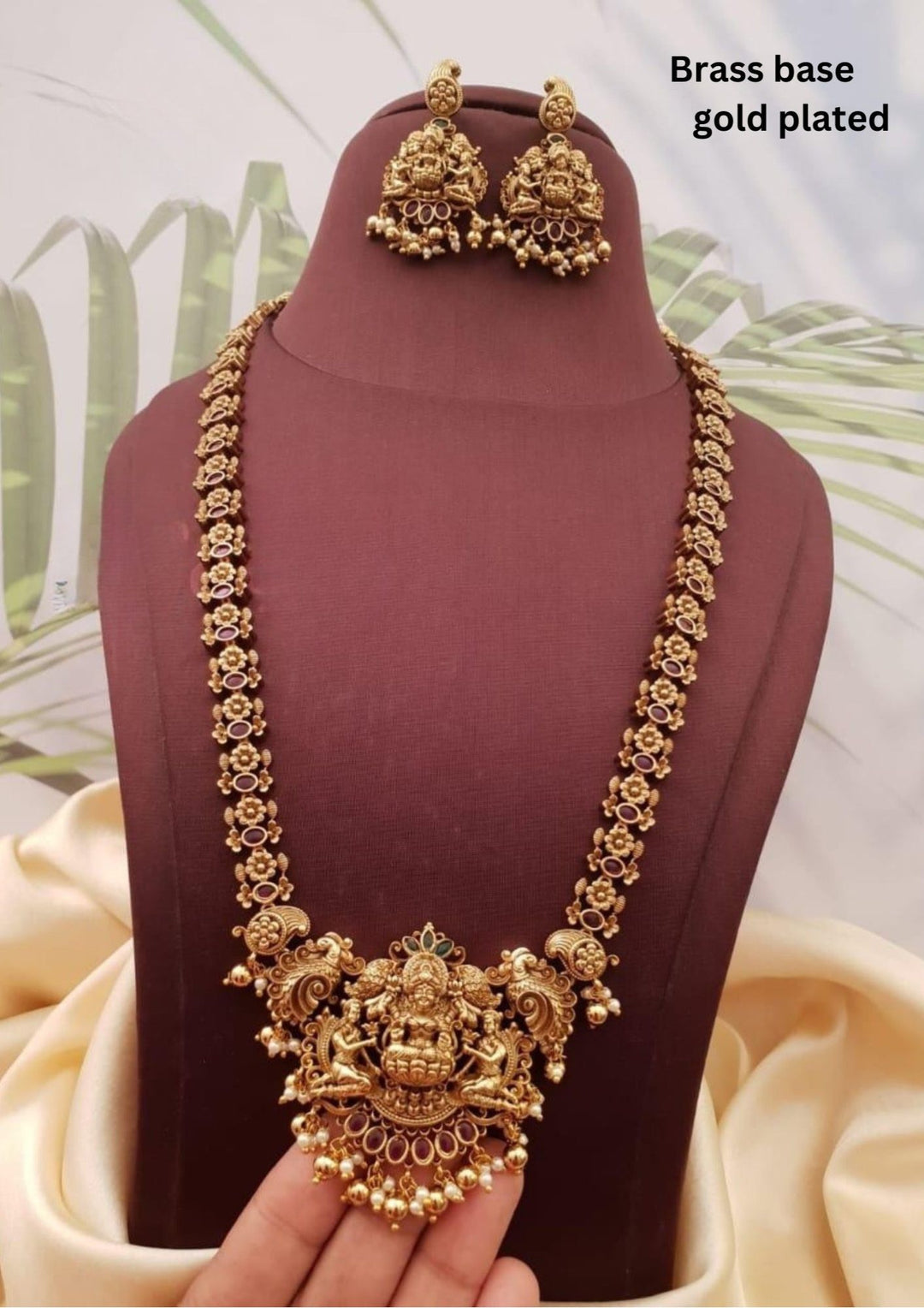 Kundan Gold Plated Temple (Mango Malai ) Necklace with Earrings g101480