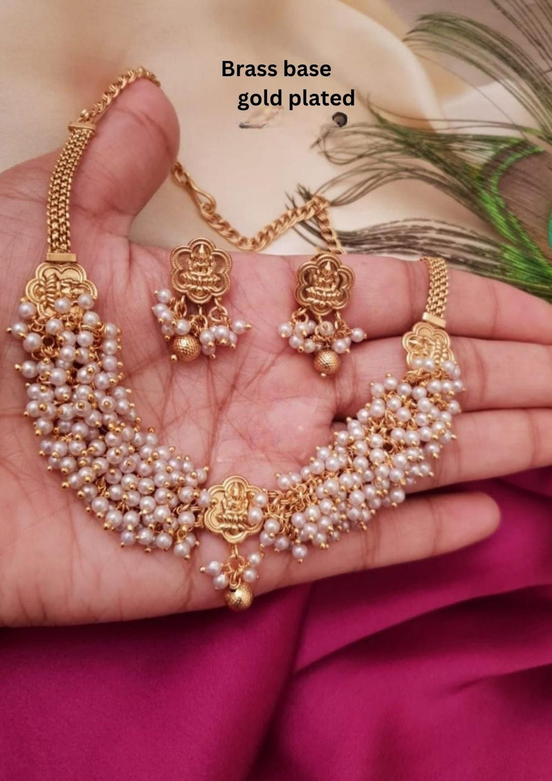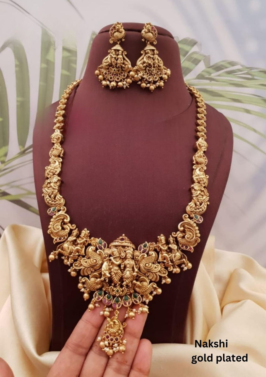 Nakshi Kundan Gold Plated Temple Necklace with Earrings g103200