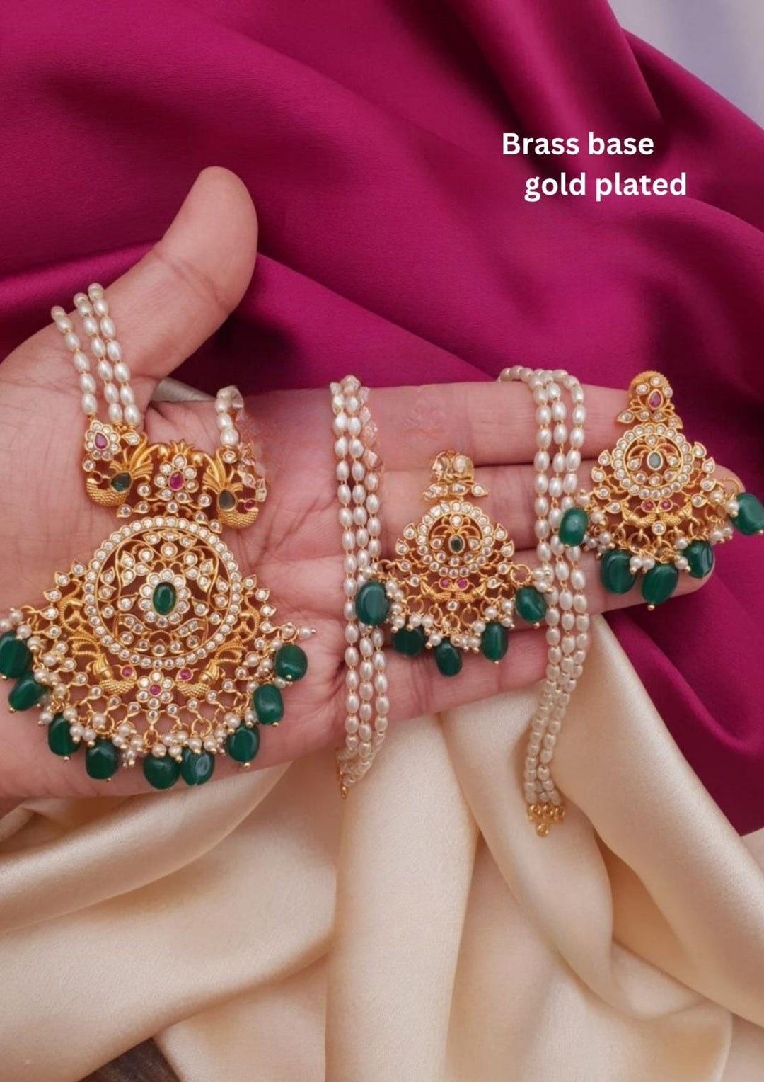 Kundan Gold Plated Real Kemp Necklace with Earrings g103099