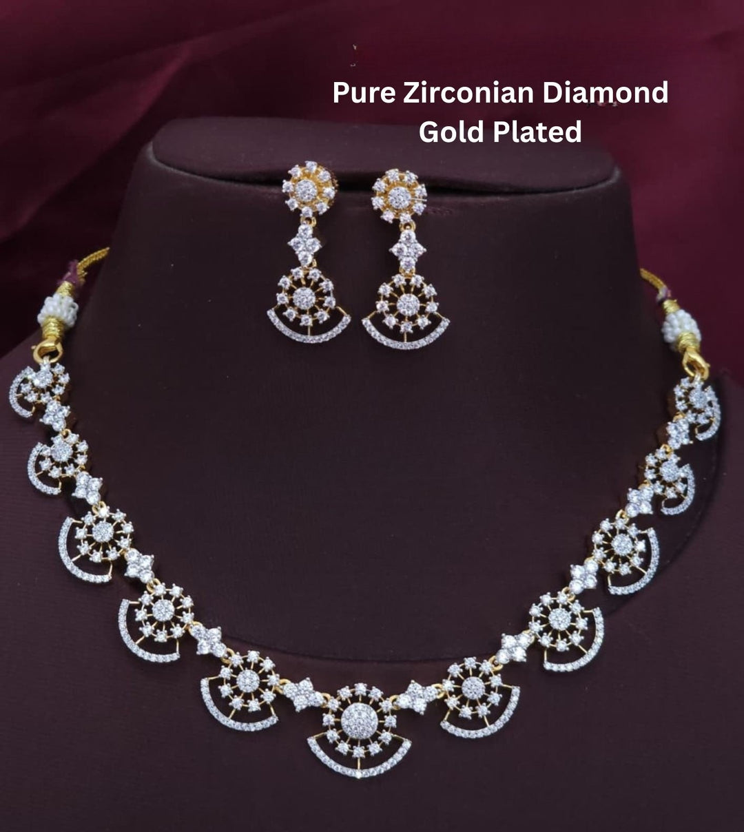 Pure Zirconian Diamond Gold Plated Necklace With Earrings r101120