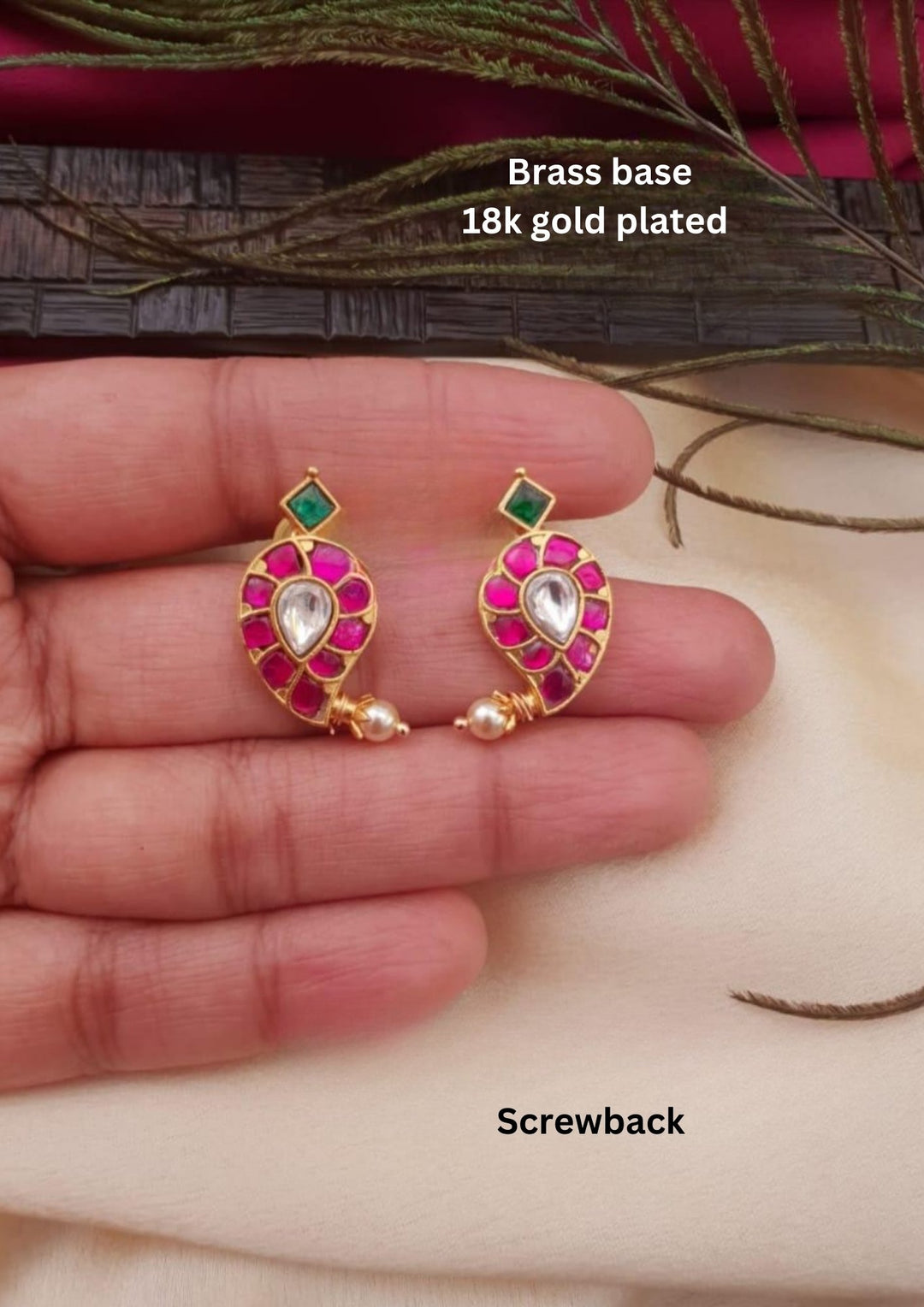 Jadau Kundan Earrings Screw back g10850