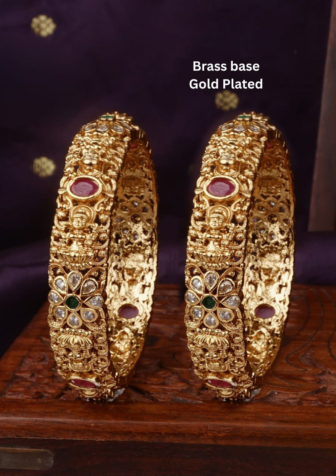 Nakshi Kundan Gold Plated Kemp Temple Lakshmi Bangles (set of 2) a85