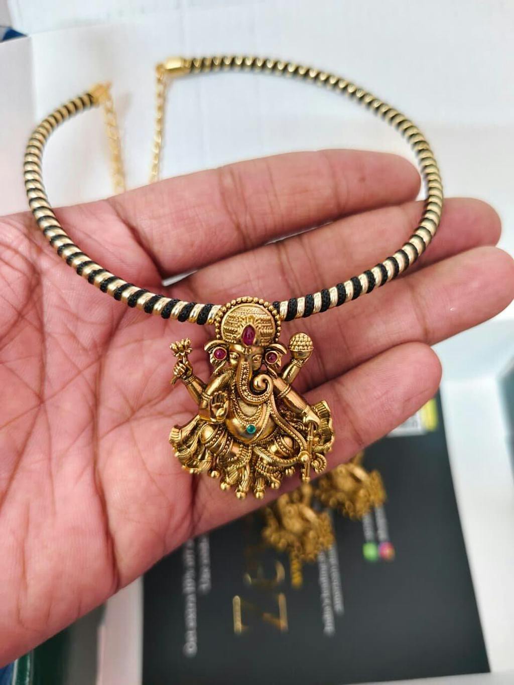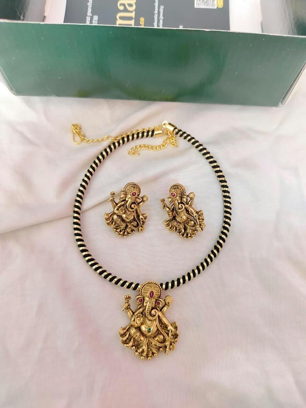 Kundan Gold Plated Temple Lord Ganesha Necklace with Earrings g101280