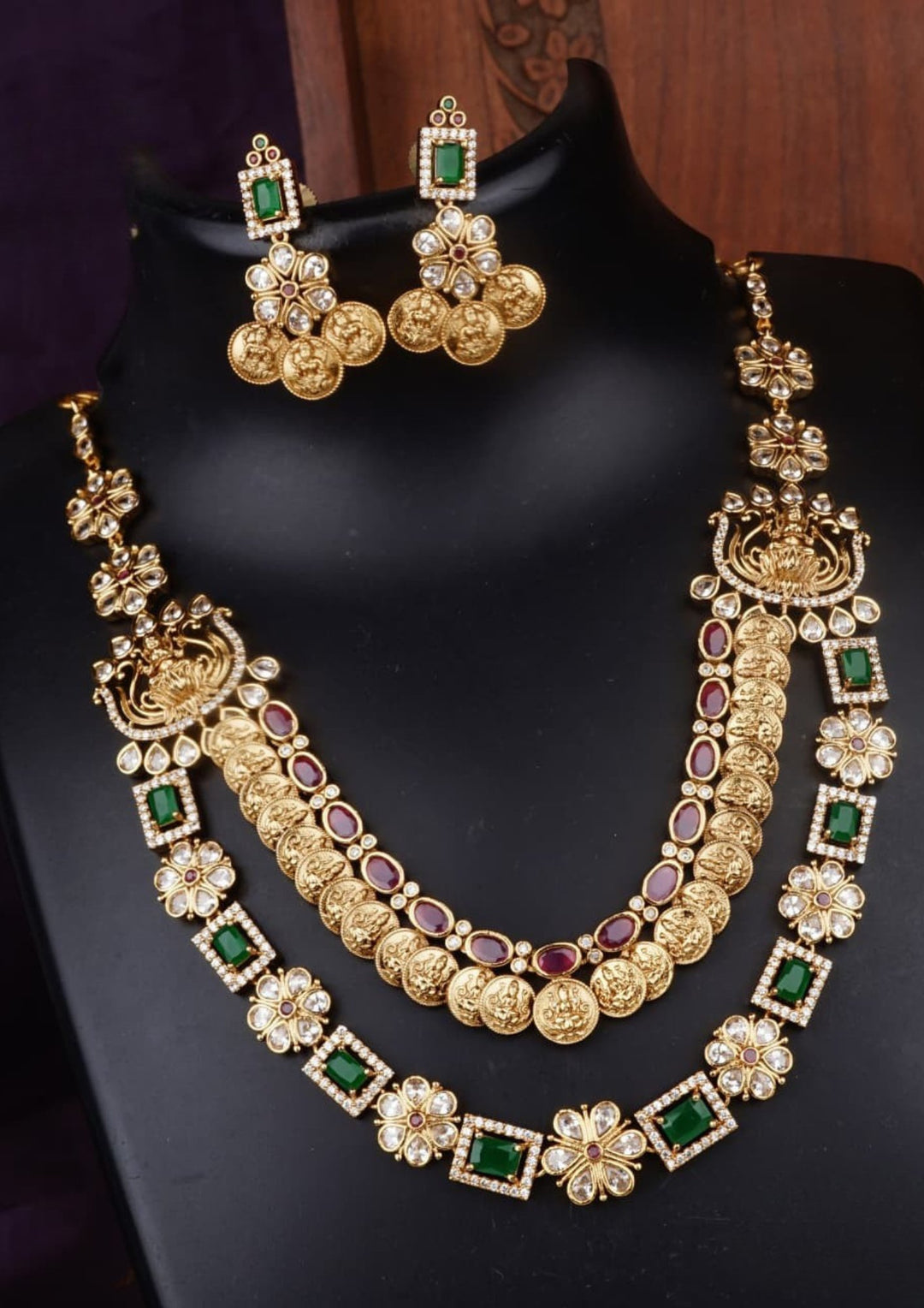 Jadau Kundan Temple Necklace With Earrings s 520084