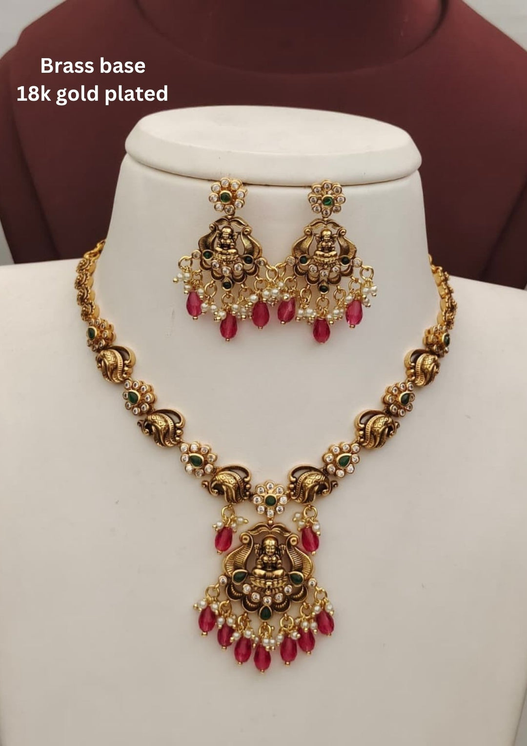 Jadau Kundan Temple Necklace with Earrings s 360023