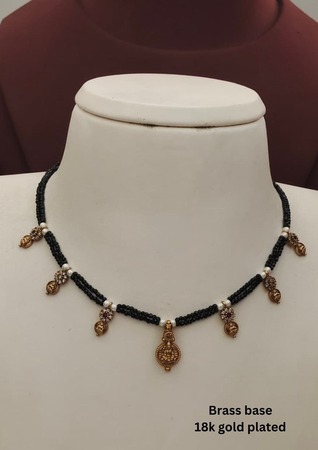 Kundan & Beads Temple Mangalsutra with Earrings s90056