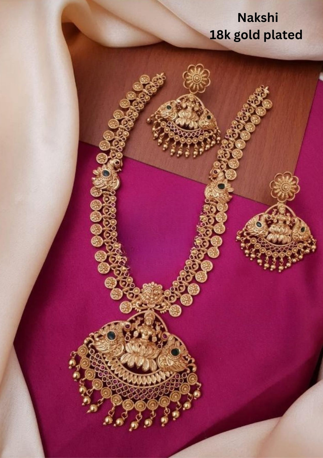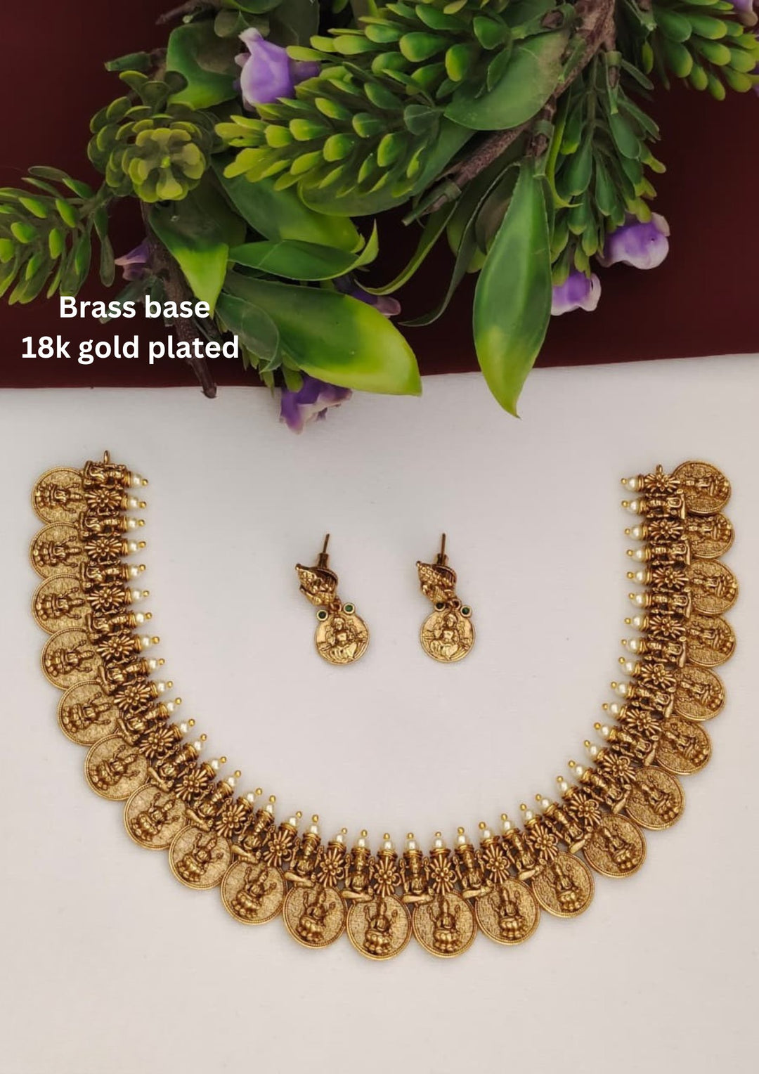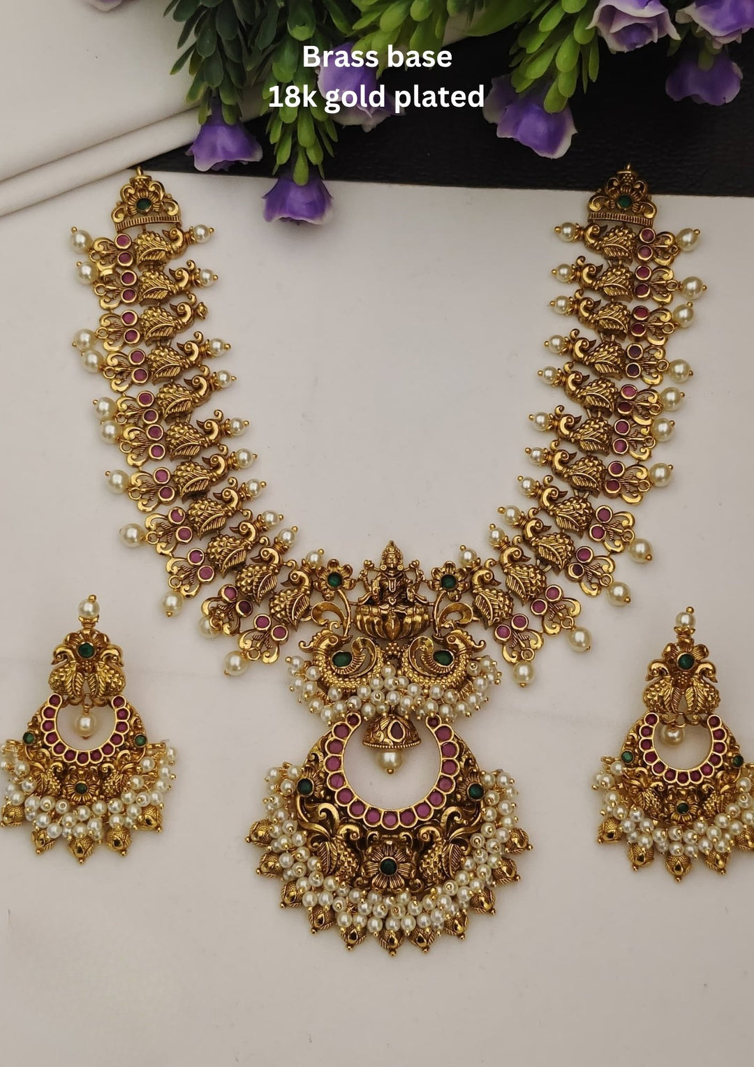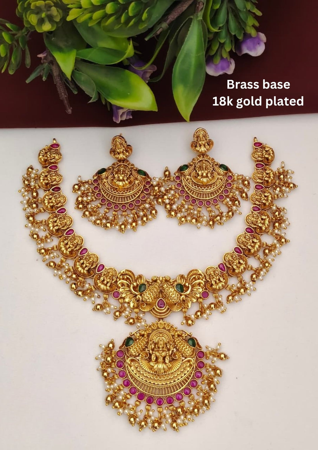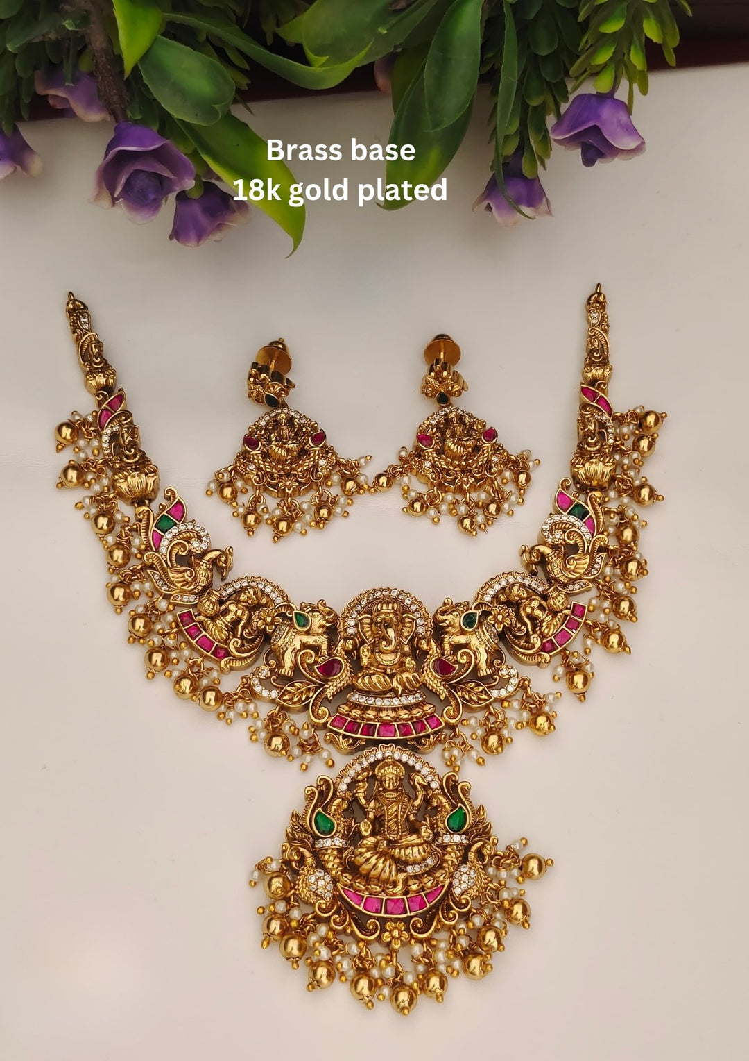 Nakshi Kundan Gold Plated Temple Necklace with Earrings g103200