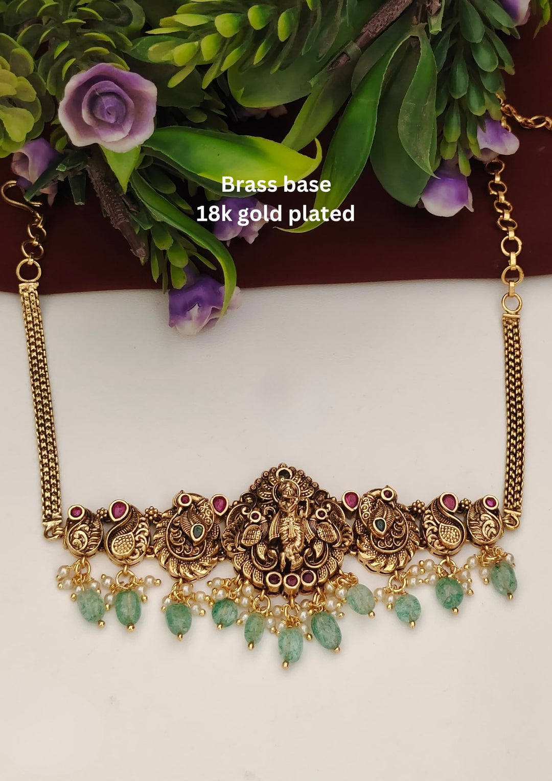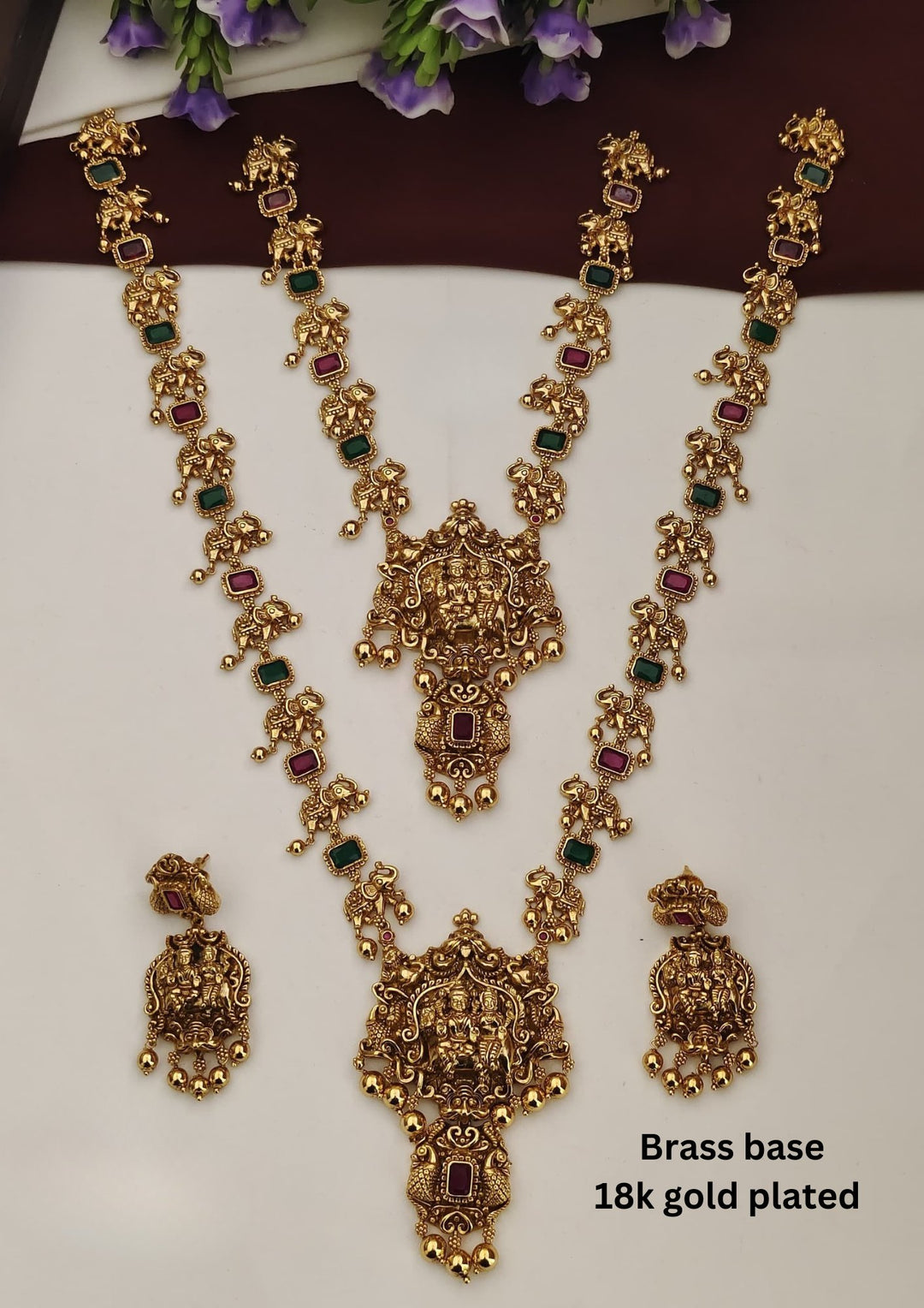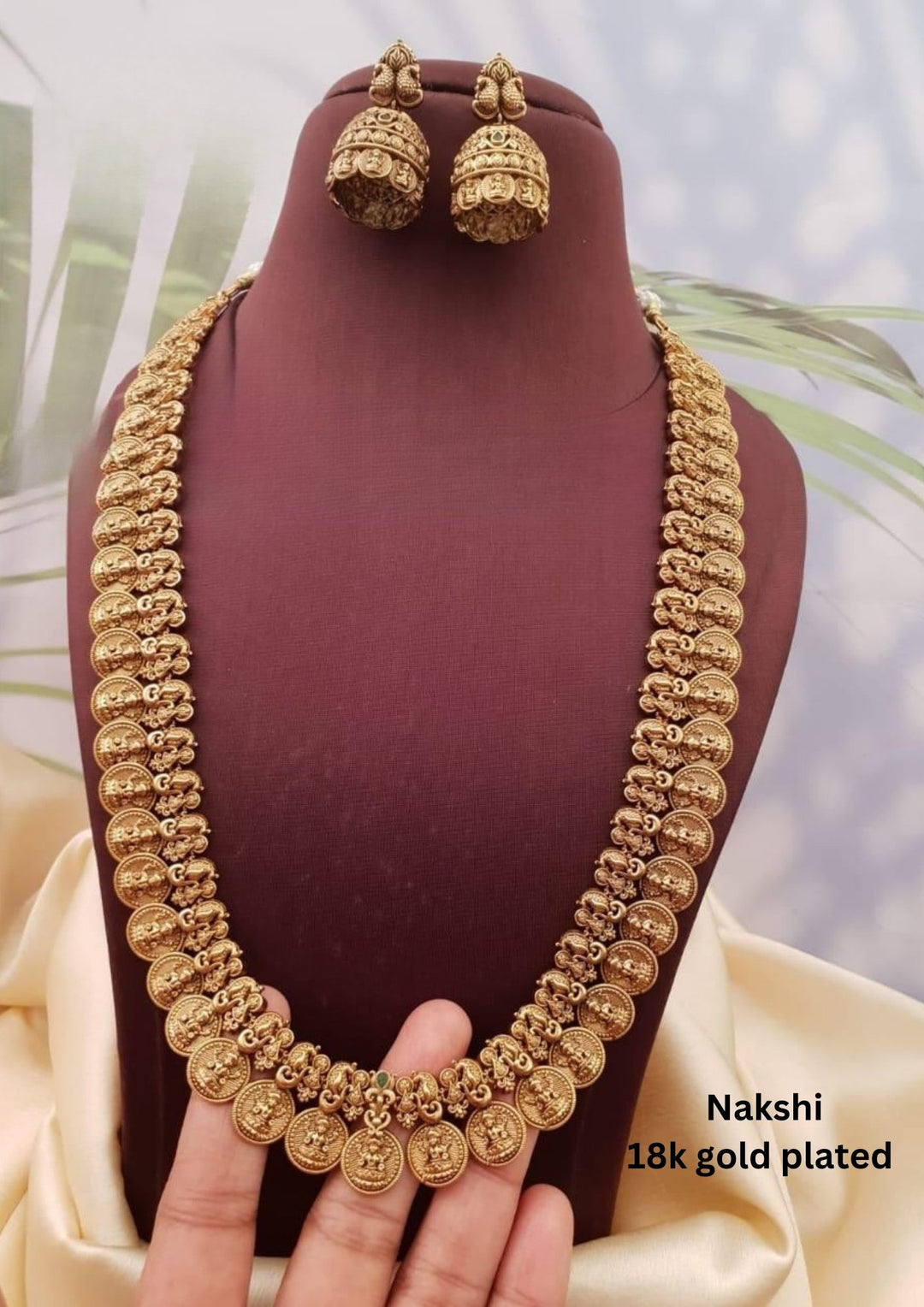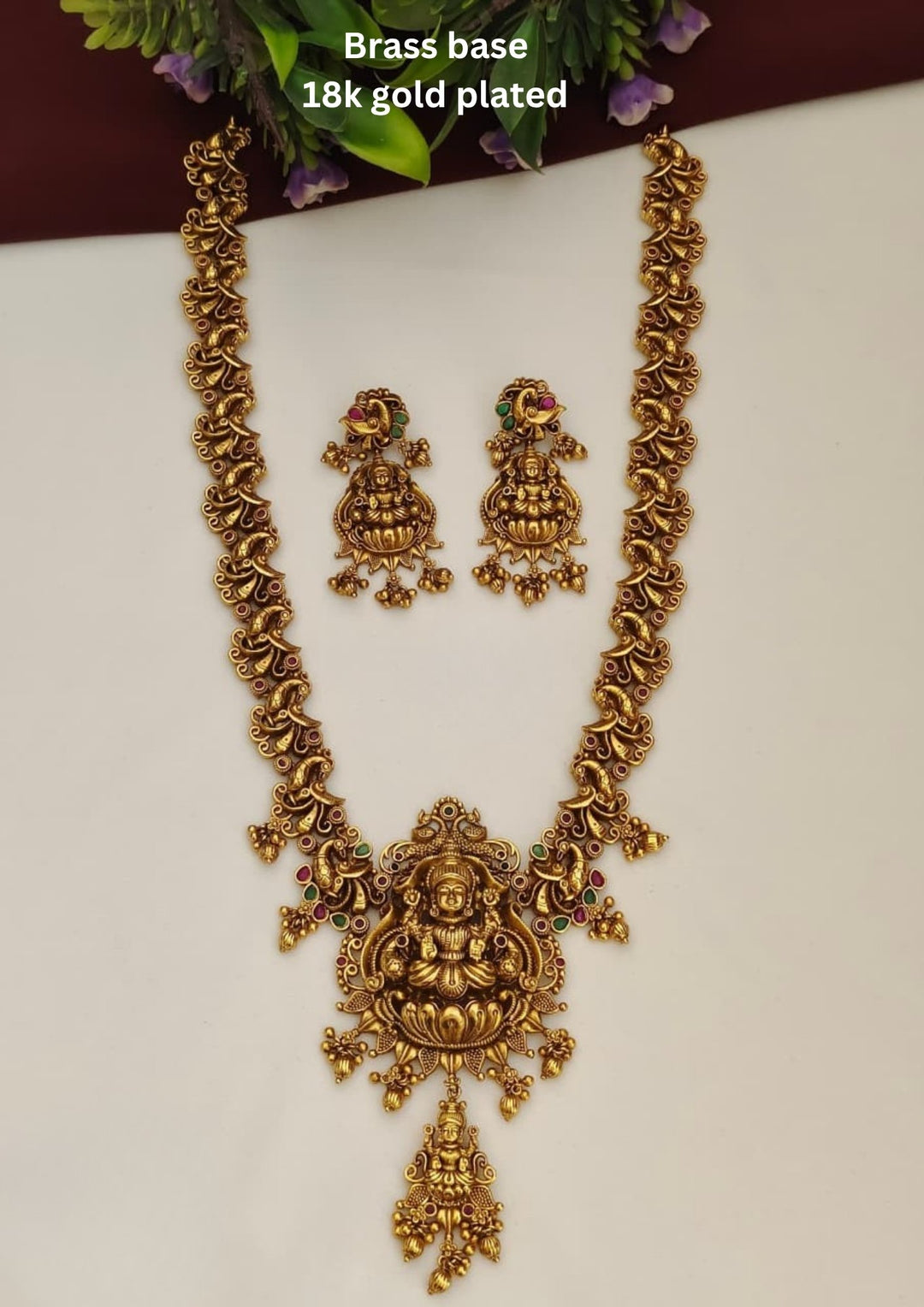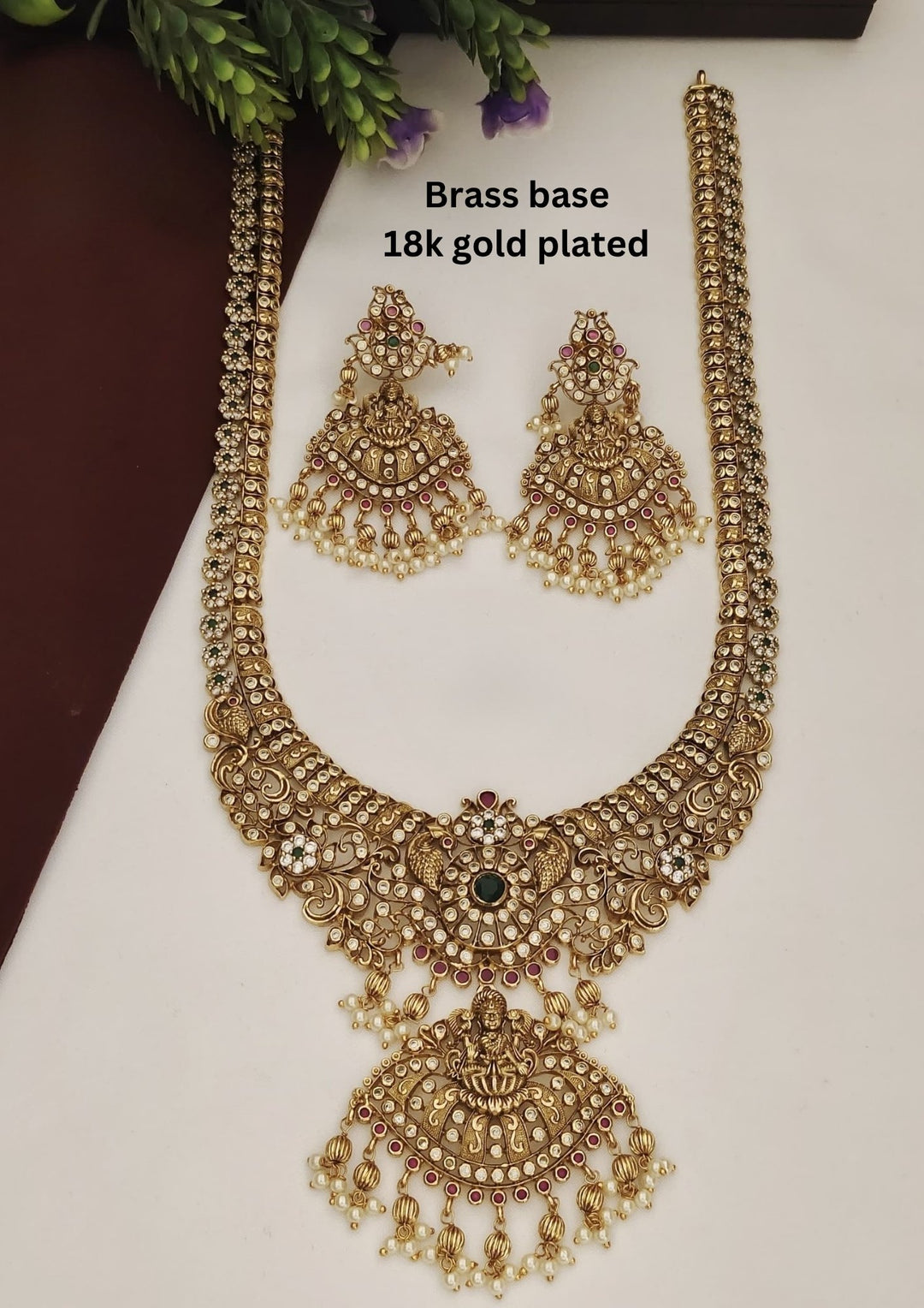 Nakshi Kundan Gold Plated Temple Necklace with Earrings g103200