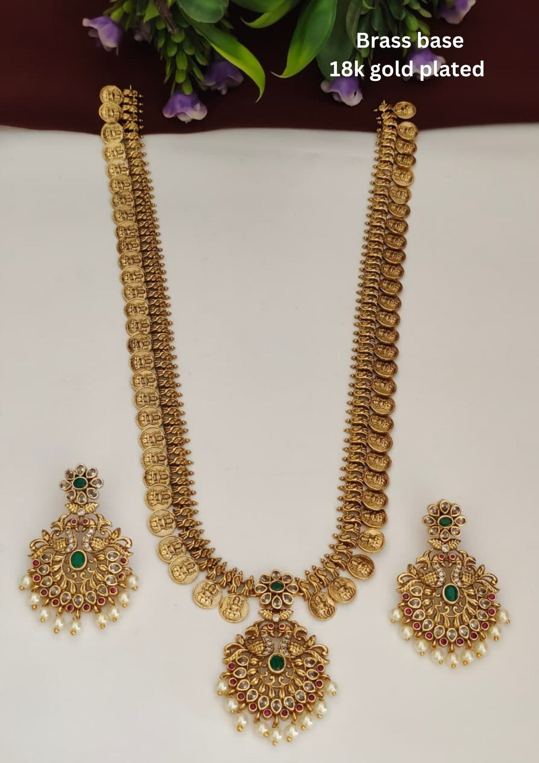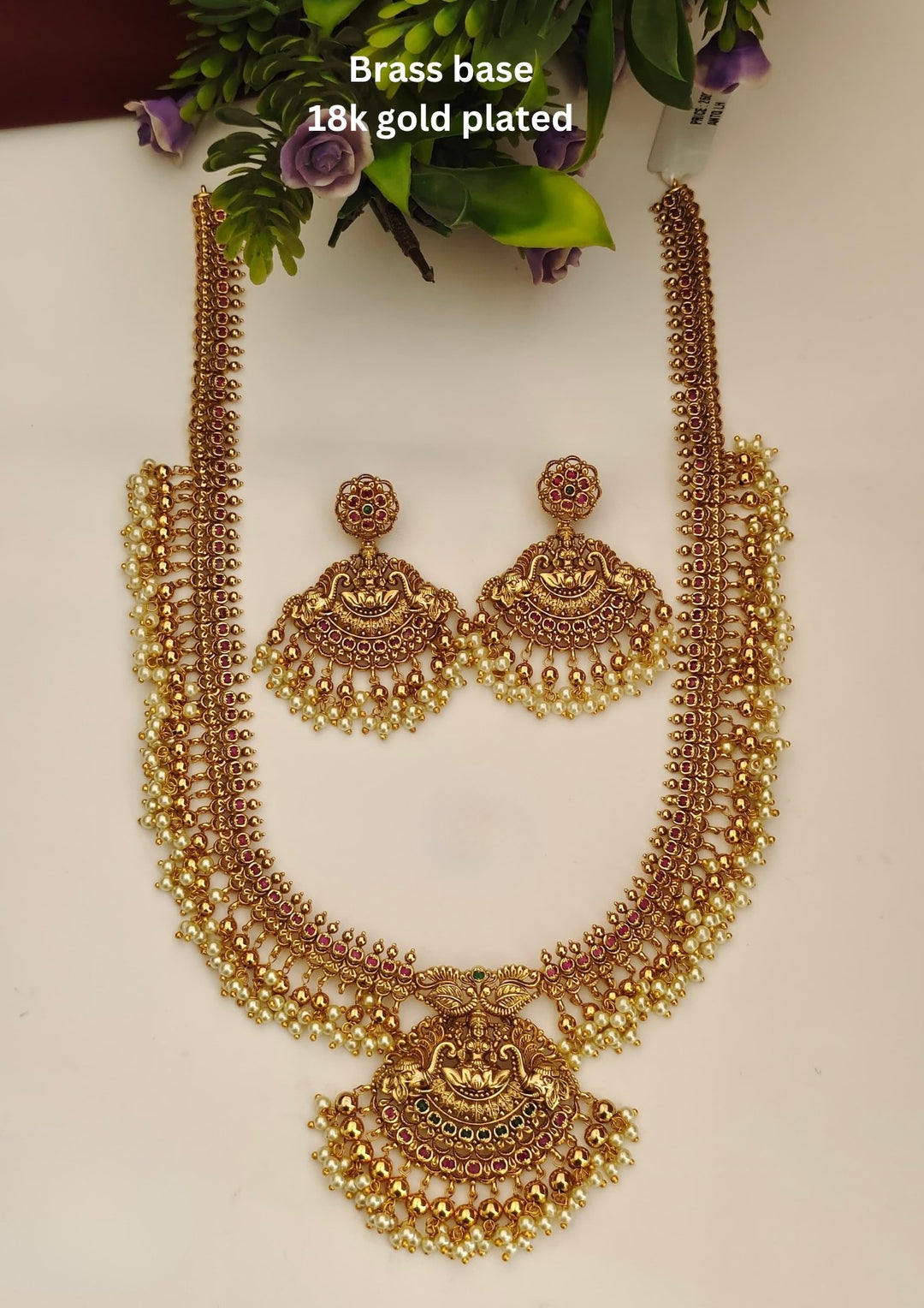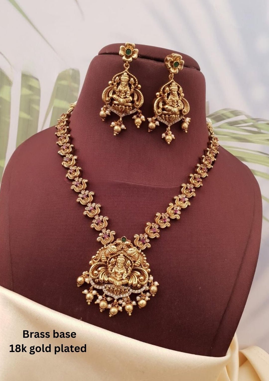 Kundan Gold Plated Temple (Mango Malai ) Necklace with Earrings g101480