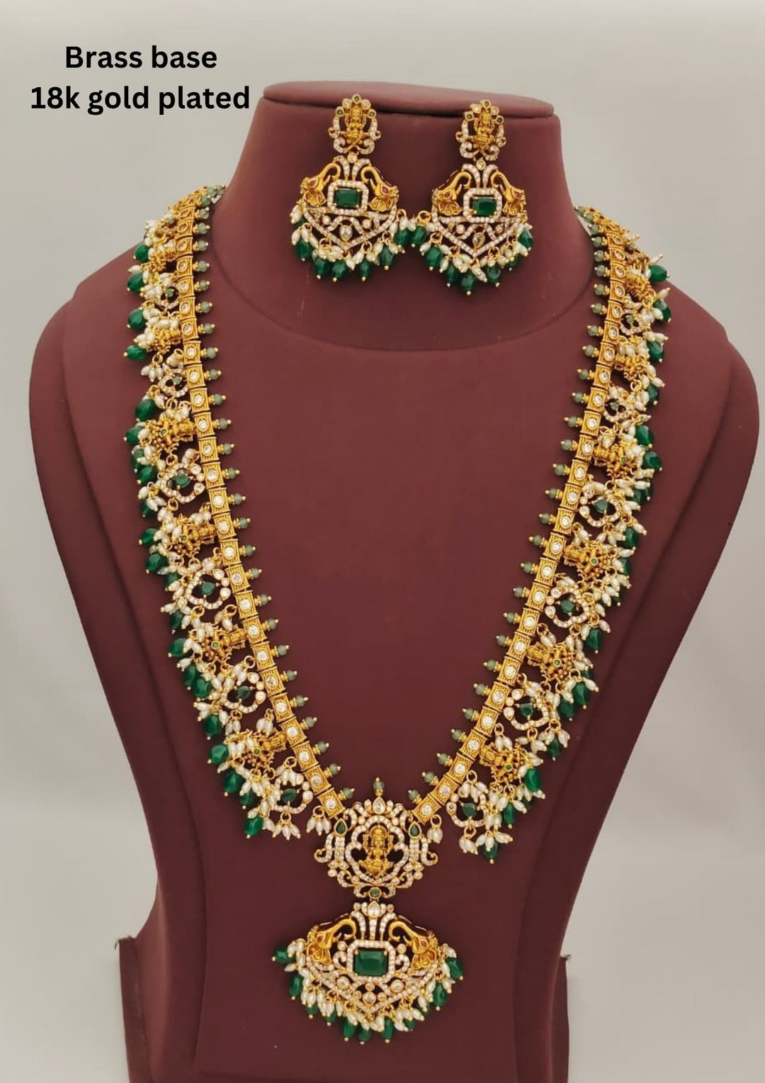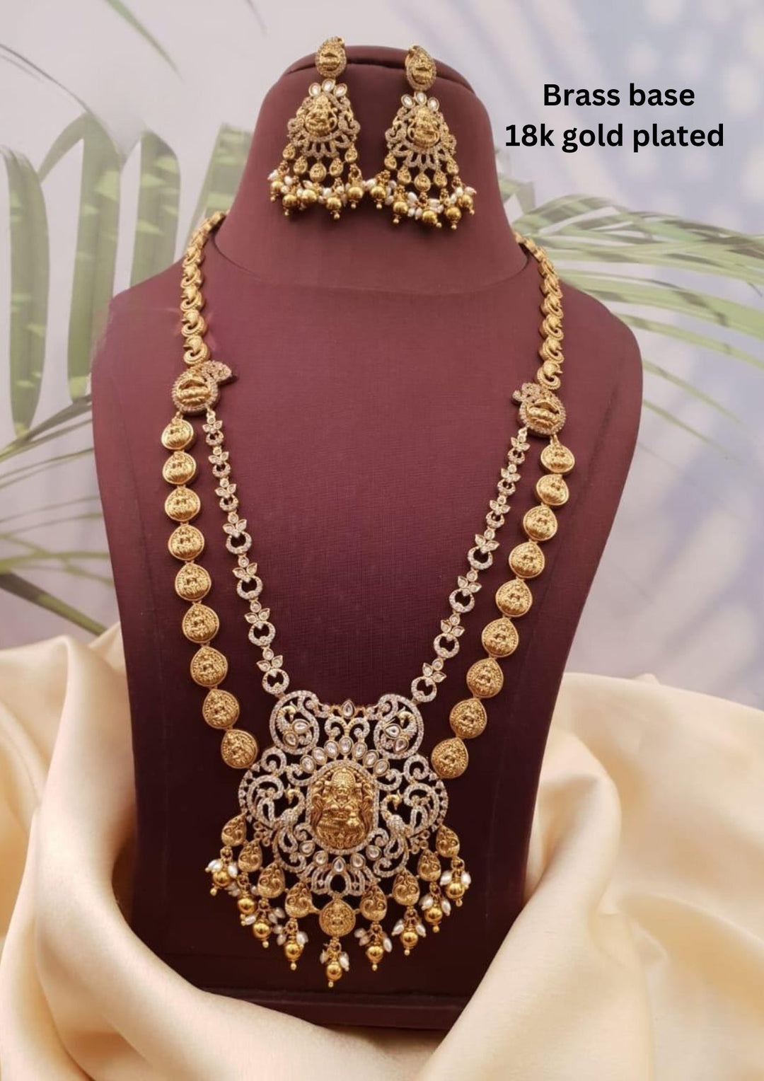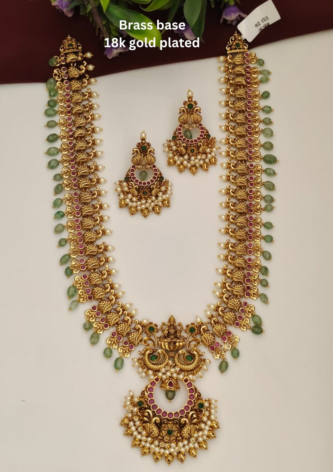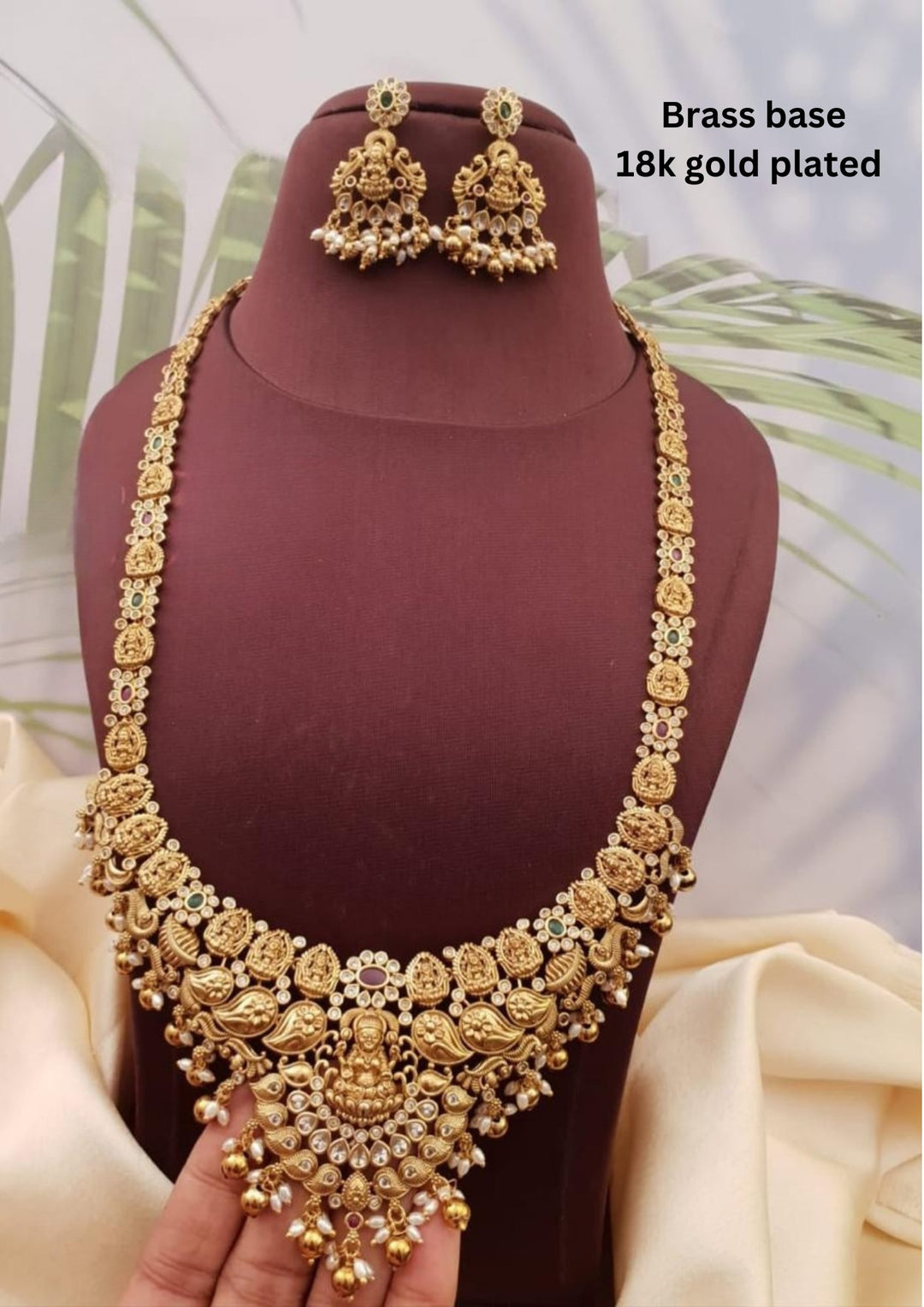Kundan Gold Plated Temple (Mango Malai ) Necklace with Earrings g101480