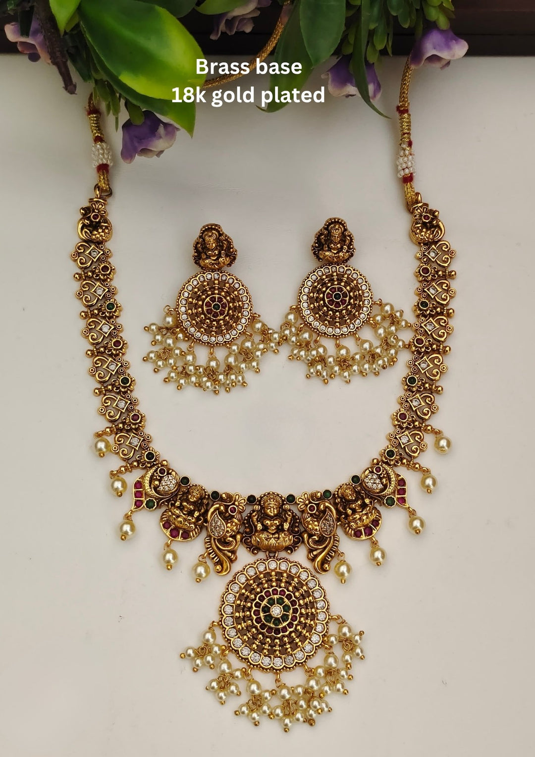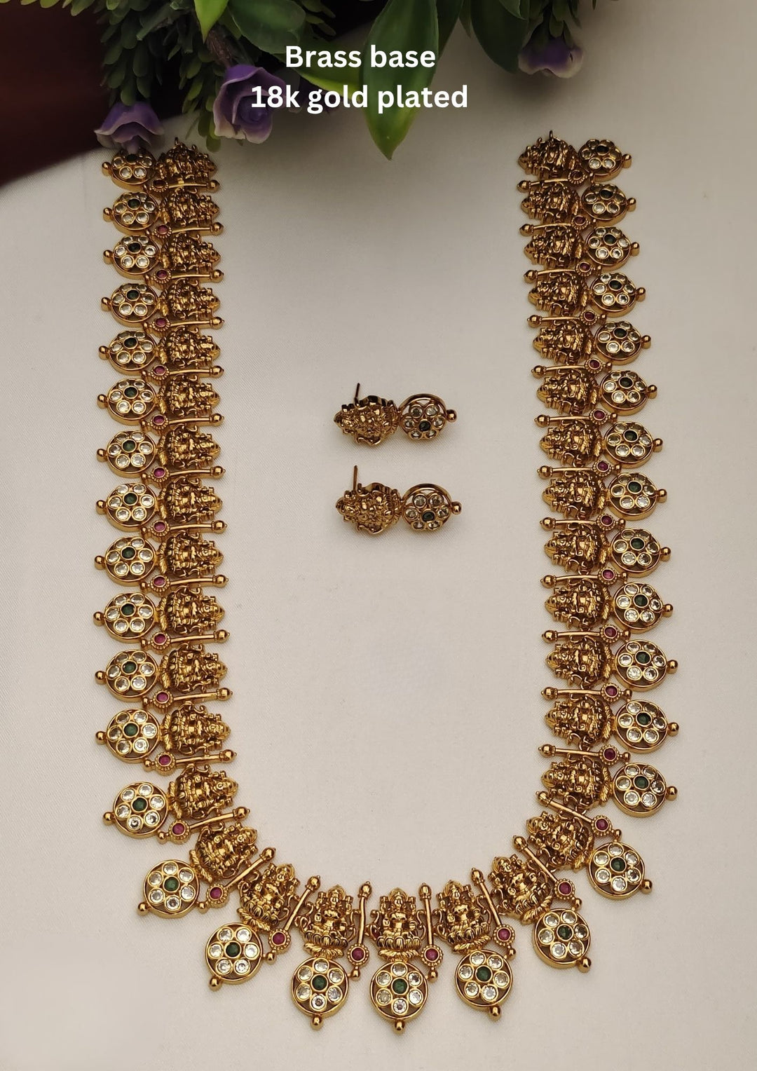 Nakshi Kundan Temple Necklace with Earrings g101720