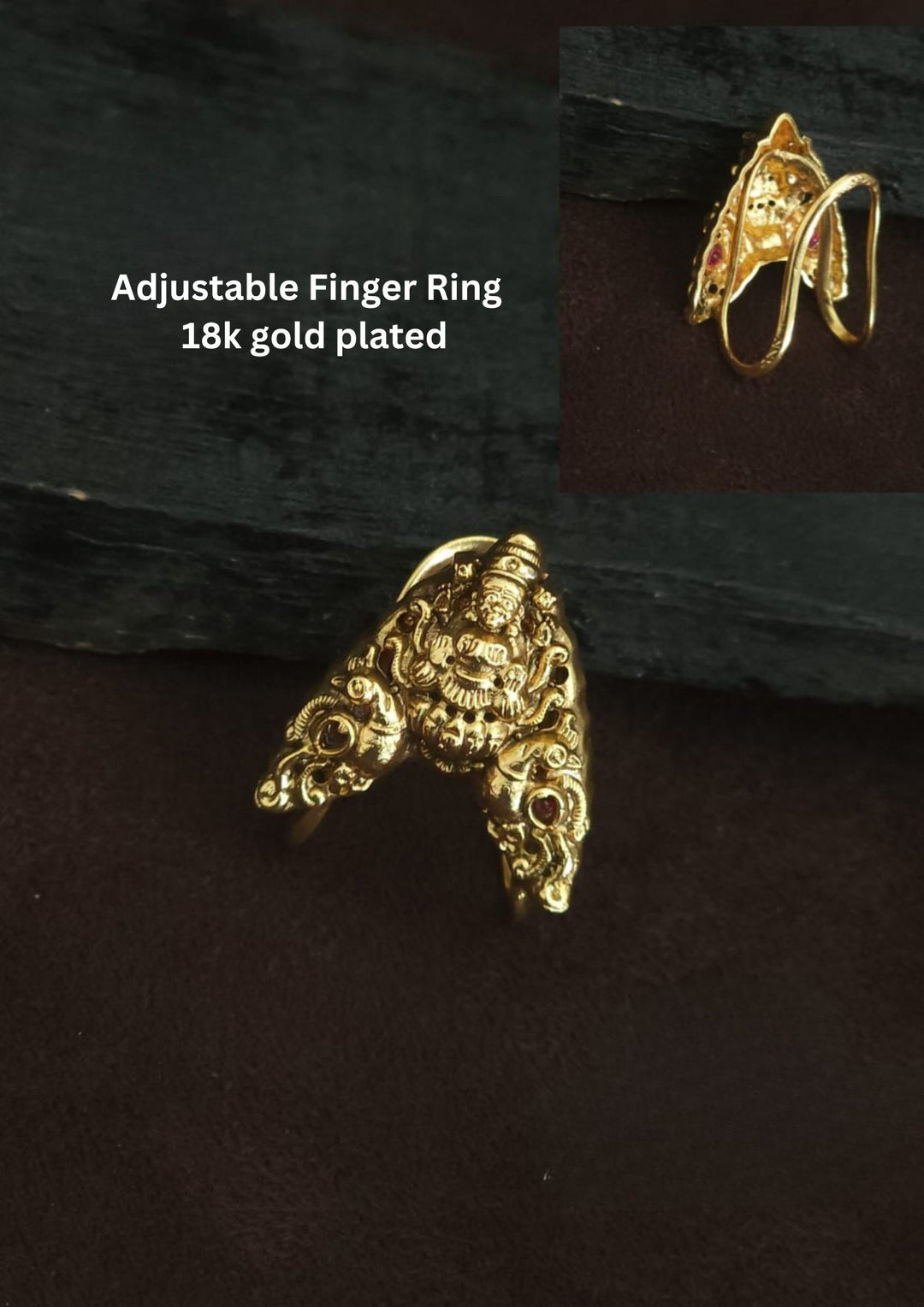 Kundan Temple Lakshmi Adjustable Finger Ring p40