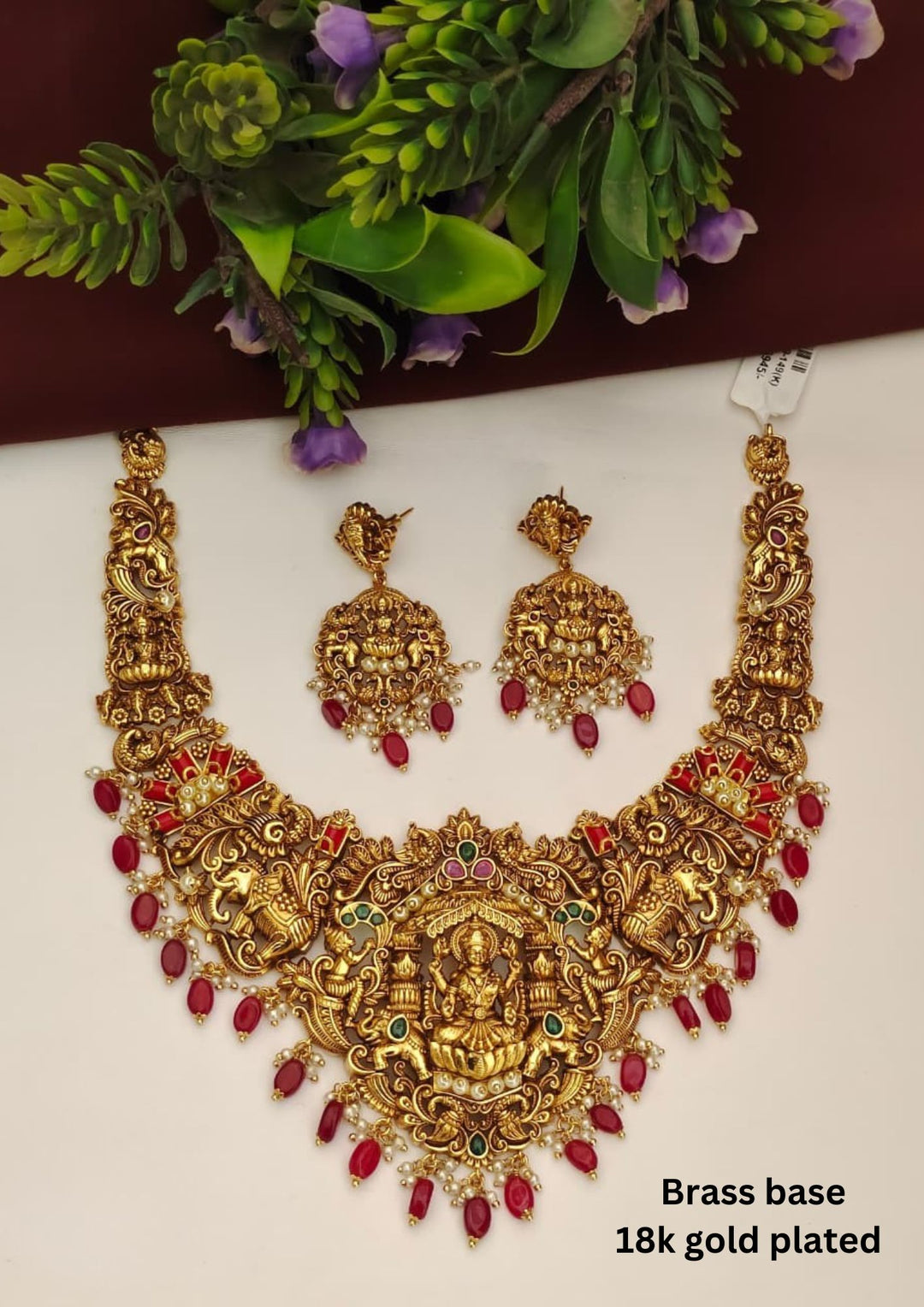 Kundan Temple Necklace with Earrings g101250