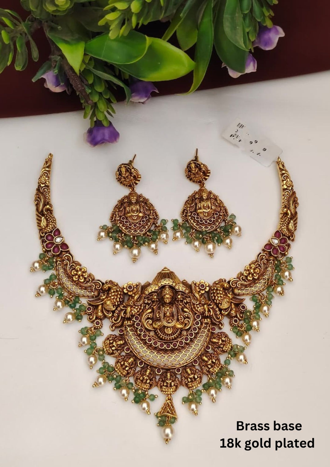 Kundan Temple Necklace with Earrings s260022