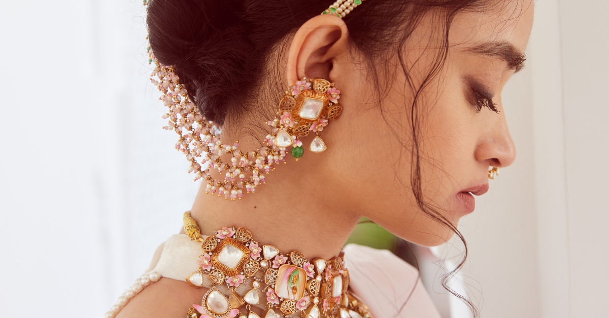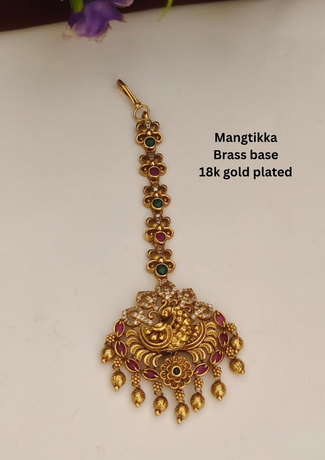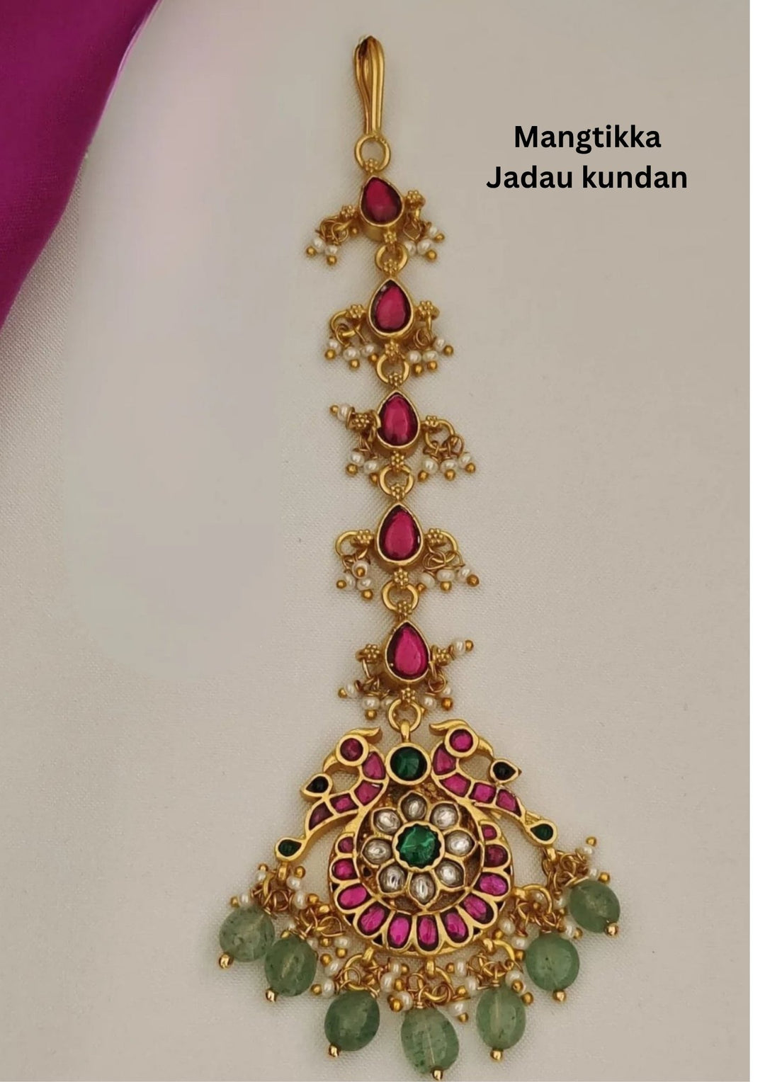 Discover our exclusive range of gold plated temple jewelry, precious stones and beadwork, oxidized jewelry, bangles, vaddanams, bridal sets, mangtikkas, vankis and a lot more.